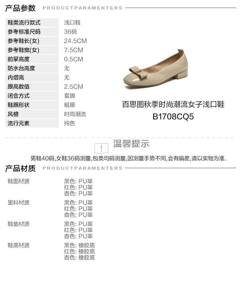 | 皮质特征:无 | 前掌高度:0.5CM | 防水台高度:无 | 鞋类流行款式:浅口鞋 |