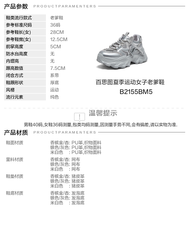 | 风格分类:老爹鞋 | 上市时间:2025年夏季 | 生产/经销/进口厂家:丽荣鞋业(深圳)有限公司 | 鞋类流行款式:老爹鞋 | 鞋头款式:圆头 |