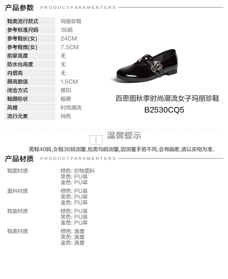| 皮质特征:无 | 前掌高度:无 | 防水台高度:无 | 鞋类流行款式:玛丽珍鞋 |