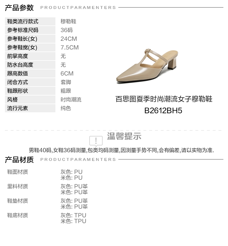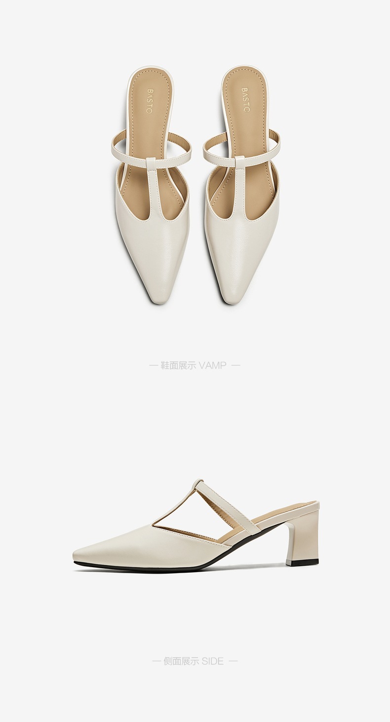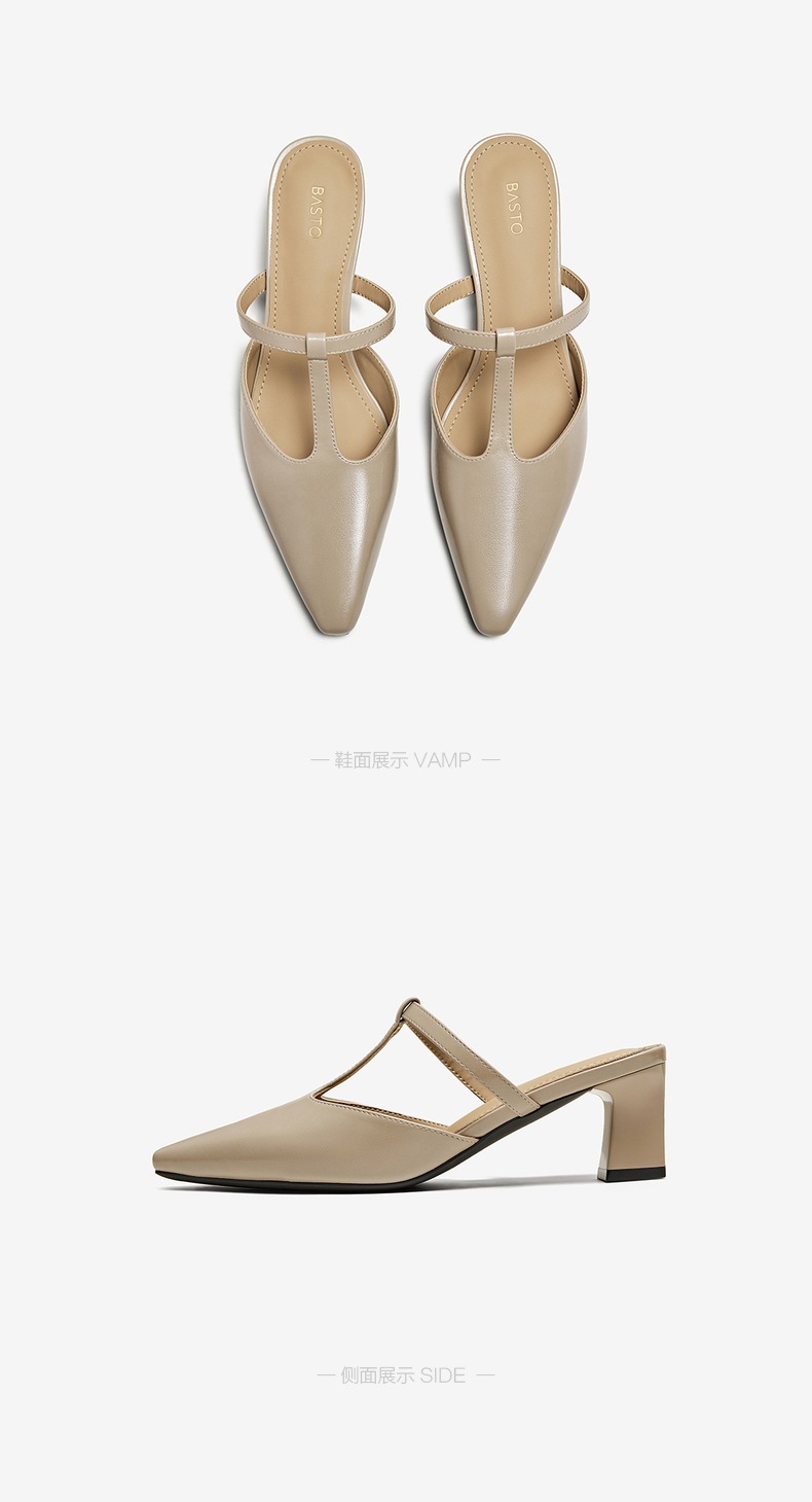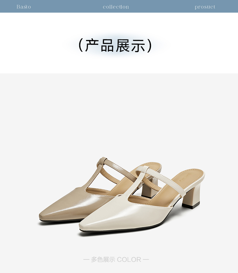 | 鞋类流行款式:穆勒鞋 | 鞋头款式:尖头 | 执行标准:皮凉鞋GB/T22756-2017 | 跟高范围:高跟鞋(6-8CM) | 鞋面图案:纯色 |
