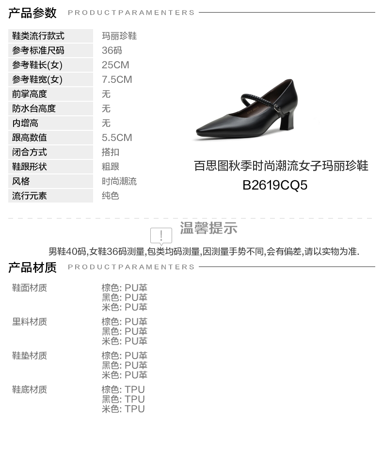 | 鞋头款式:尖头 | 鞋底材质:TPU | 鞋面图案:纯色 | 内增高:无 | 鞋跟形状:粗跟 |