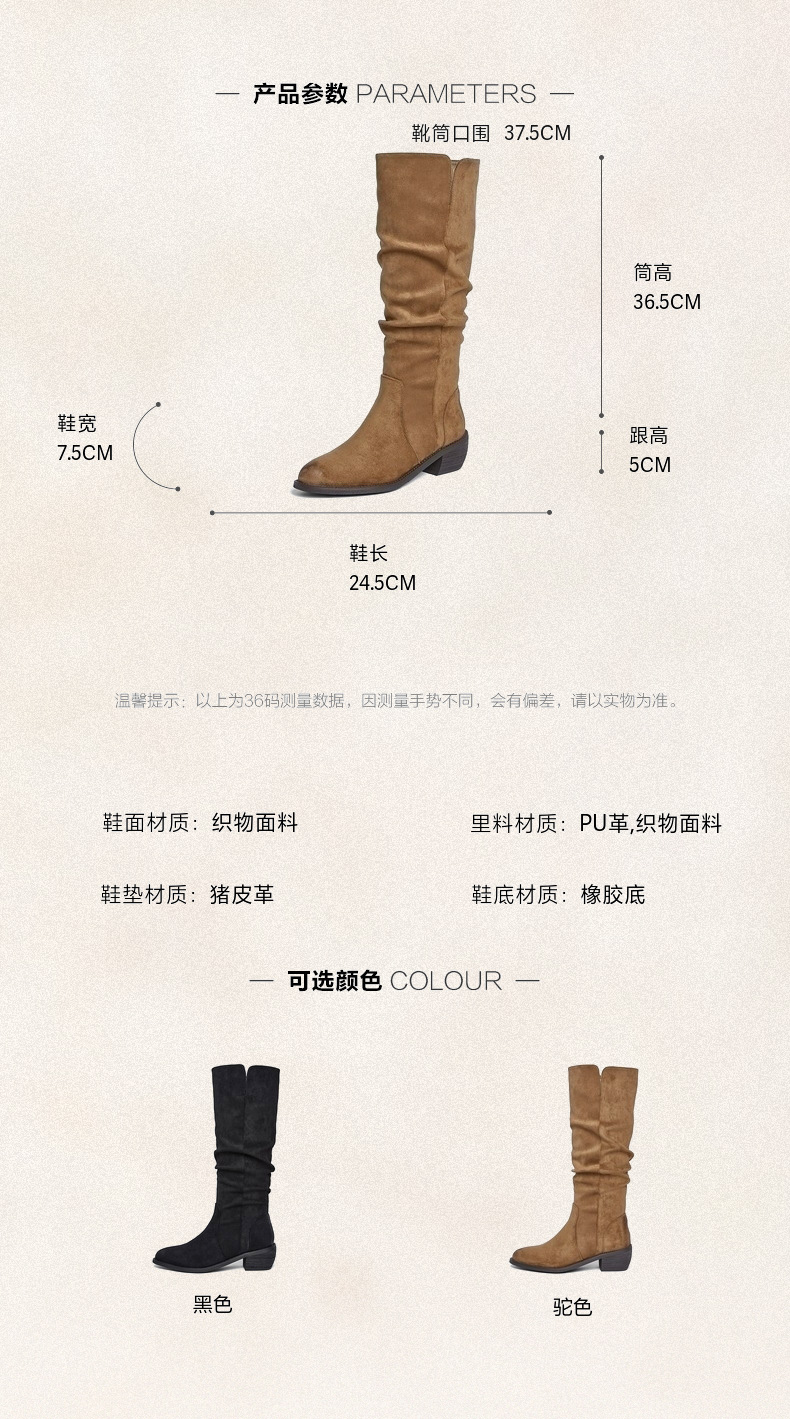 | 配跟:无 | 靴筒口围:37.5CM | 上市时间:2025年冬季 | 鞋类流行款式:时装靴 | 鞋头款式:尖头 |