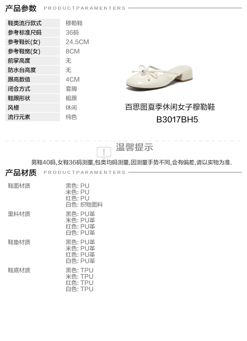 | 皮质特征:PU | 防水台高度:无 | 鞋类流行款式:穆勒鞋 |