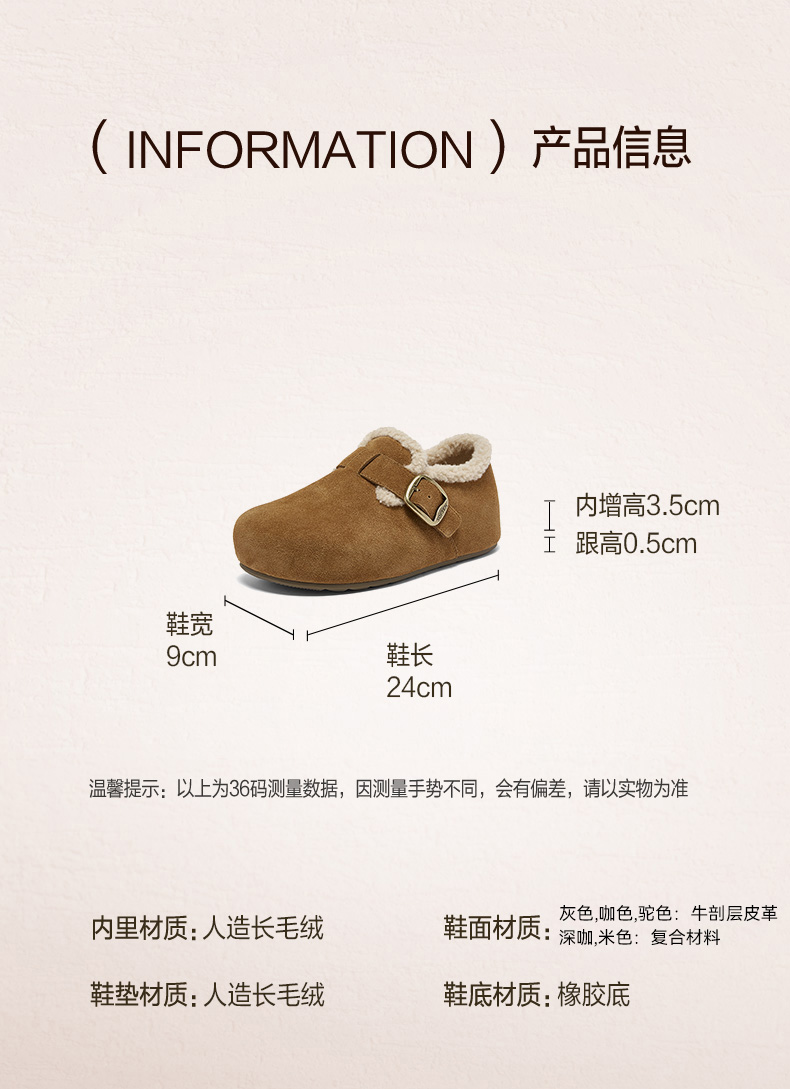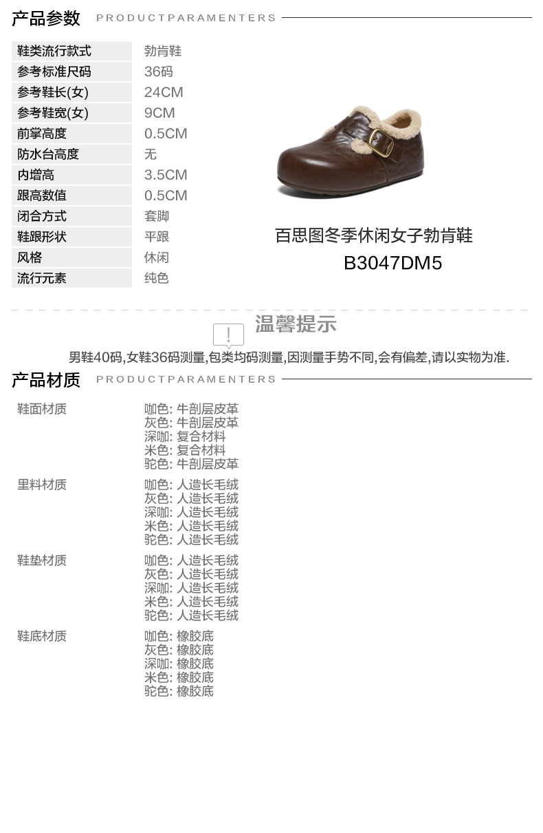 | 配跟:无 | 上市时间:2025年冬季 | 鞋类流行款式:勃肯鞋 | 鞋头款式:圆头 | 鞋面图案:纯色 |