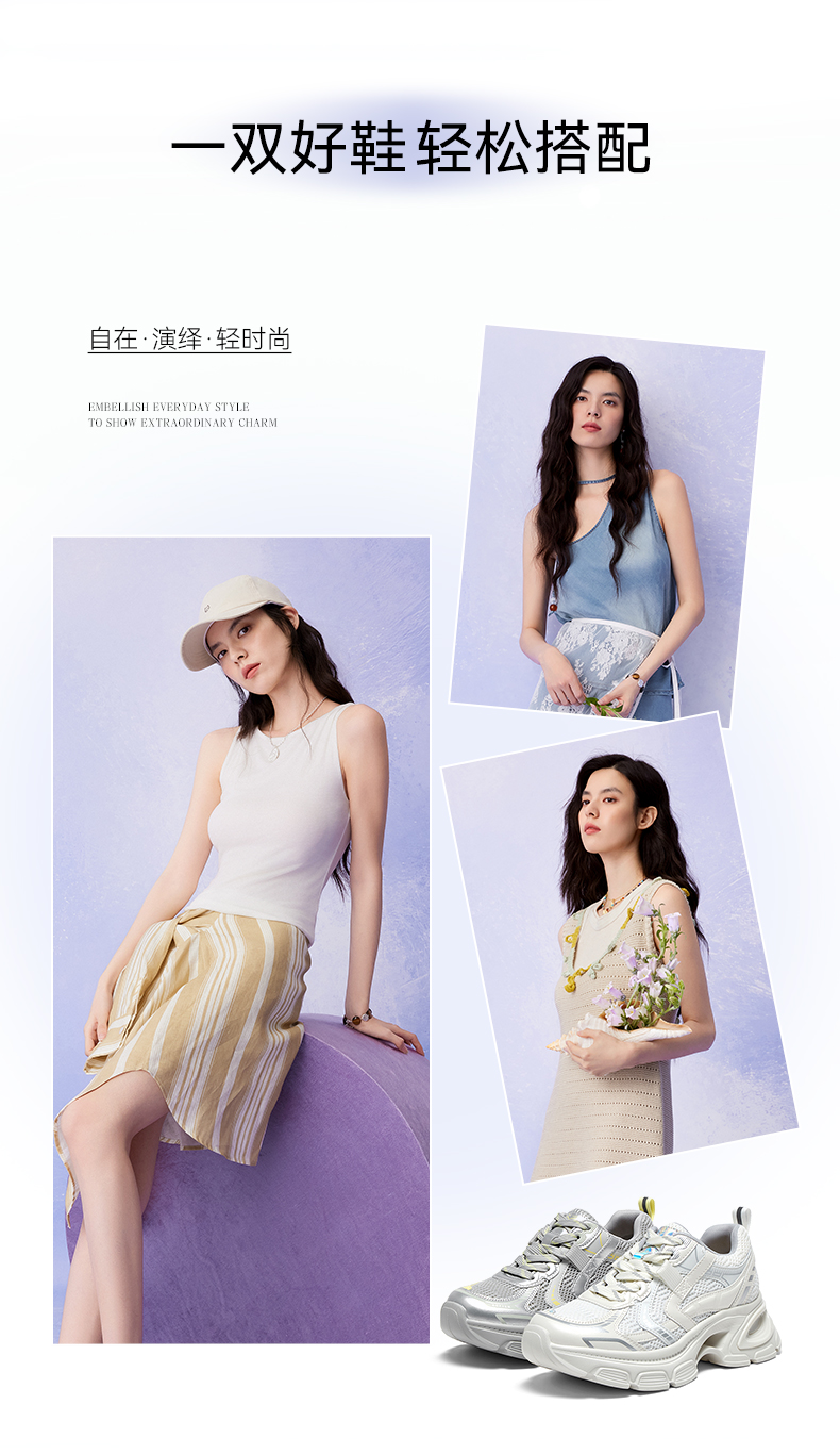 BASTO(百思图),品牌拥有17年历史,秉承优雅、甜美、清新的设计理念,主张“好嫁风”的产品风格,将甜美俏丽的少女情怀融合优雅气质的时尚品味,塑造出唯美优雅、受欢迎的女鞋款式。主打以女性温柔与亲和力为特色的流行时尚产品,糅合雅致又富有亲和力的裸粉色调,淑媛端庄、清新甜美。目前品牌已开设线下门店达1400多家。