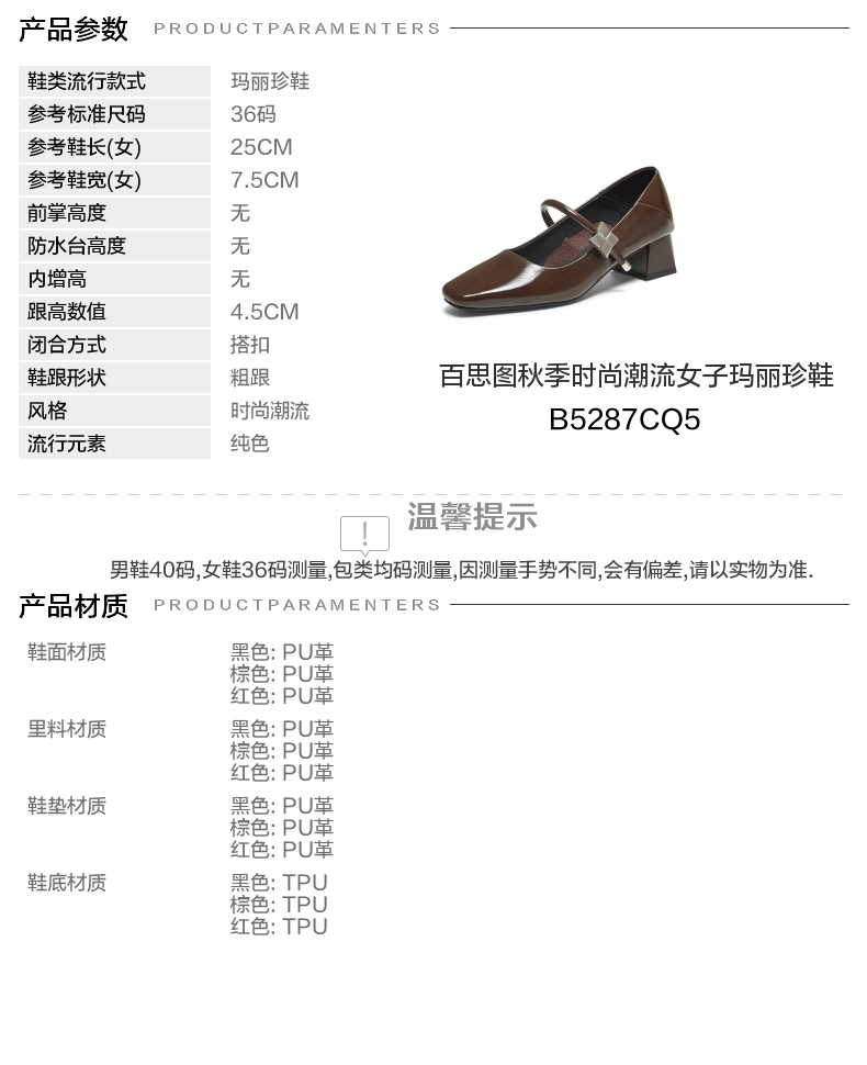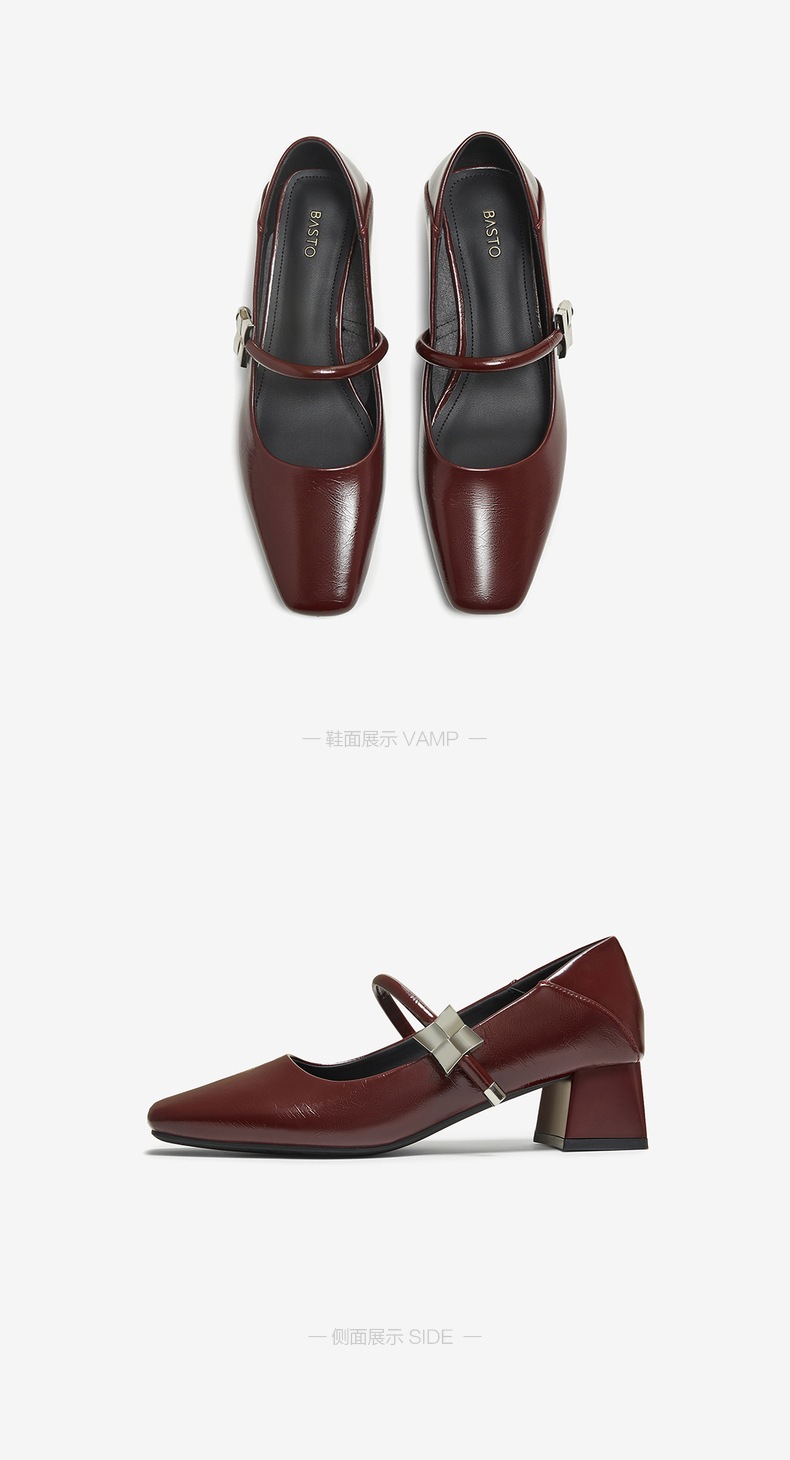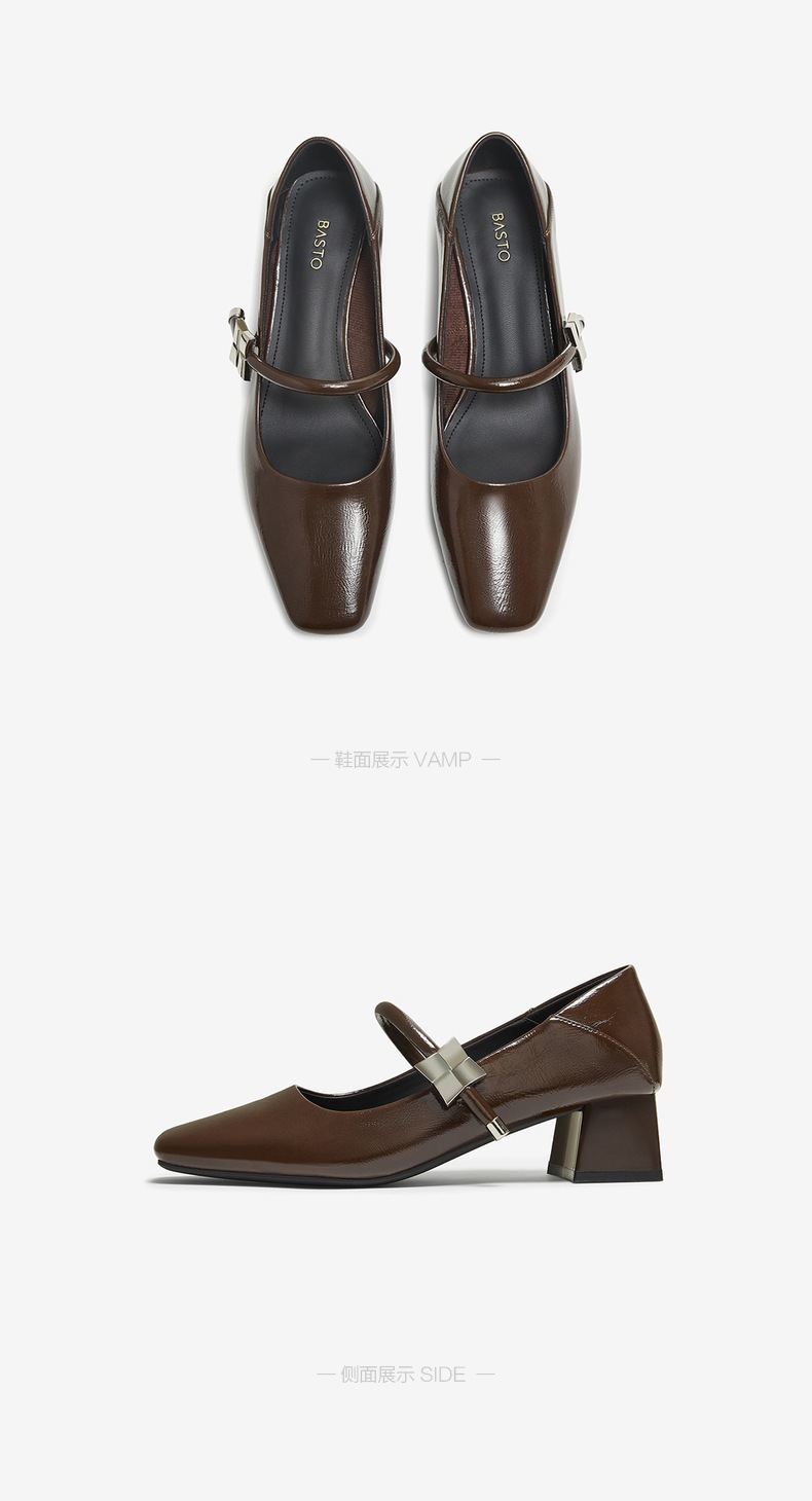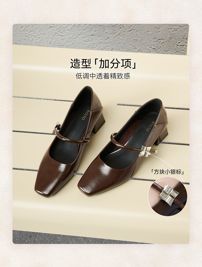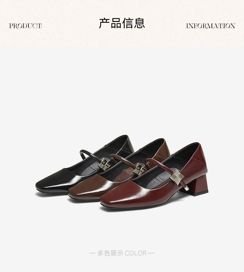 | 上市时间:2025年秋季 | 鞋类流行款式:玛丽珍鞋 | 鞋头款式:方头 | 鞋面图案:纯色 | 鞋跟形状:粗跟 |