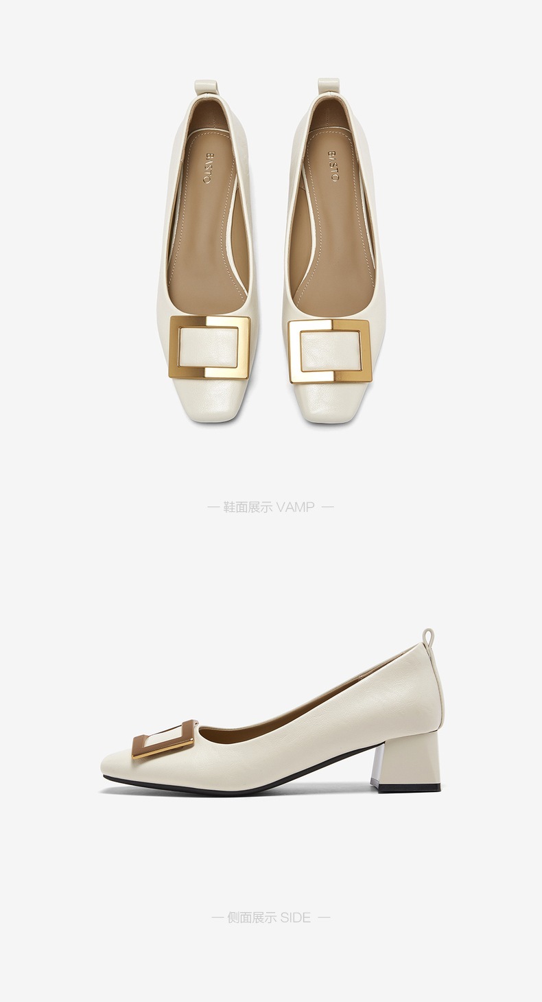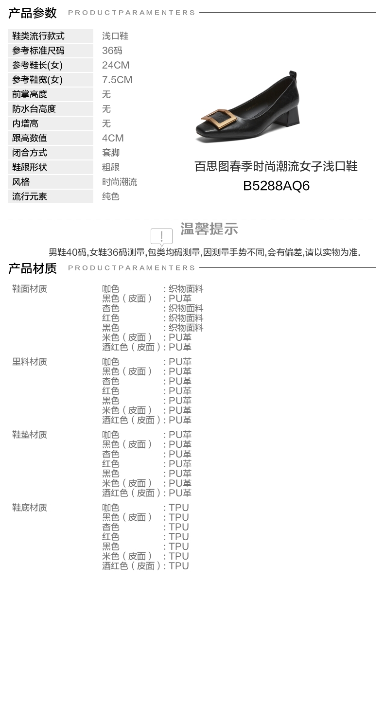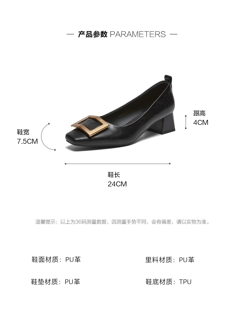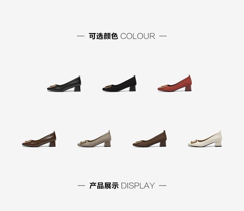 | 上市时间:2026年春季 | 鞋类流行款式:浅口鞋 | 鞋头款式:方头 | 鞋面图案:纯色 | 鞋跟形状:粗跟 |