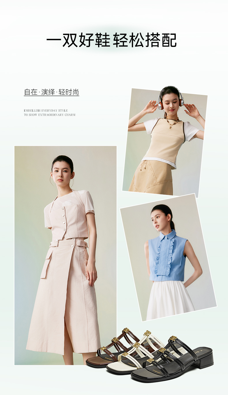 | 渠道划分:线下同步 | 前掌高度:1CM | 皮质特征:PU | 防水台高度:无 | 销售季:2025年夏季 |