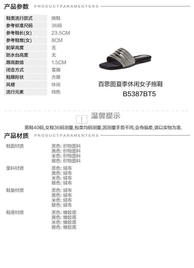 | 皮质特征:织物 | 防水台高度:无 | 鞋类流行款式:拖鞋 |