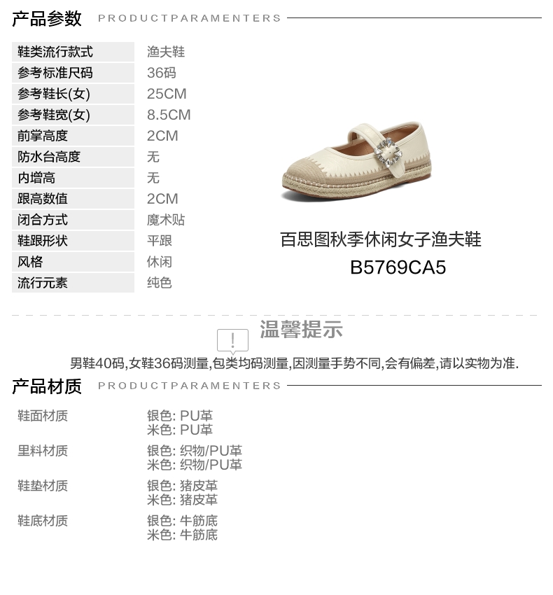 | 配跟:无 | 上市时间:2025年秋季 | 鞋类流行款式:渔夫鞋 | 鞋头款式:圆头 | 鞋面图案:纯色 |