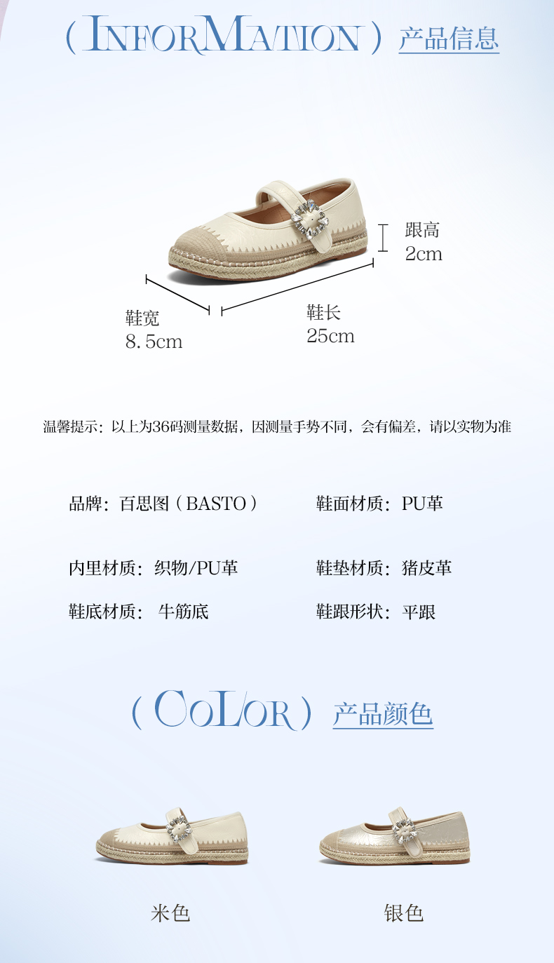 | 色系:米色 | 跟高数值:2CM | 性别:女子 | 里料材质:织物/PU革 | 制鞋工艺:胶贴皮鞋 |