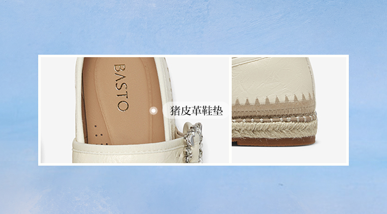 BASTO(百思图),品牌拥有17年历史,秉承优雅、甜美、清新的设计理念,主张“好嫁风”的产品风格,将甜美俏丽的少女情怀融合优雅气质的时尚品味,塑造出唯美优雅、受欢迎的女鞋款式。主打以女性温柔与亲和力为特色的流行时尚产品,糅合雅致又富有亲和力的裸粉色调,淑媛端庄、清新甜美。目前品牌已开设线下门店达1400多家。