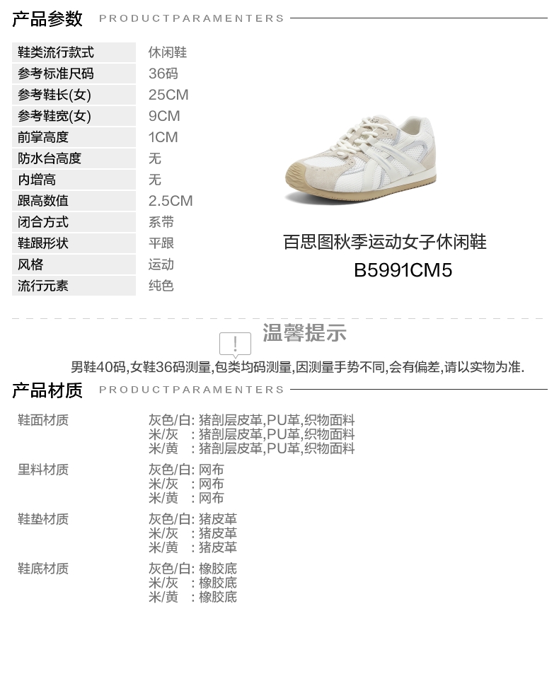 | 色系:米色 | 跟高数值:2.5CM | 性别:女子 | 里料材质:网布 | 制鞋工艺:胶贴皮鞋 |