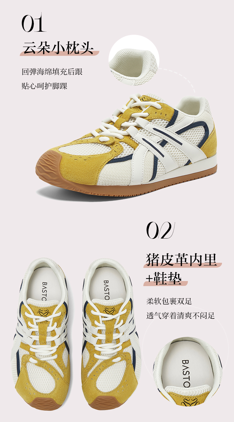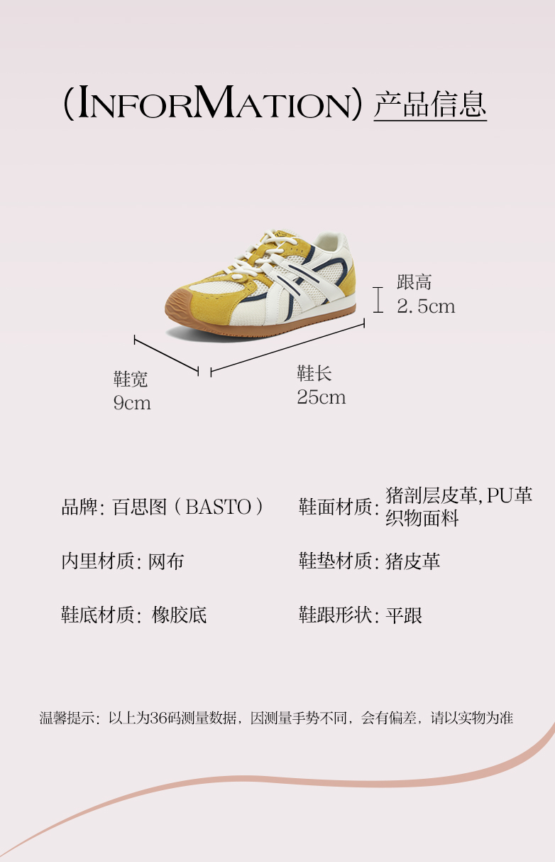 BASTO(百思图),品牌拥有17年历史,秉承优雅、甜美、清新的设计理念,主张“好嫁风”的产品风格,将甜美俏丽的少女情怀融合优雅气质的时尚品味,塑造出唯美优雅、受欢迎的女鞋款式。主打以女性温柔与亲和力为特色的流行时尚产品,糅合雅致又富有亲和力的裸粉色调,淑媛端庄、清新甜美。目前品牌已开设线下门店达1400多家。