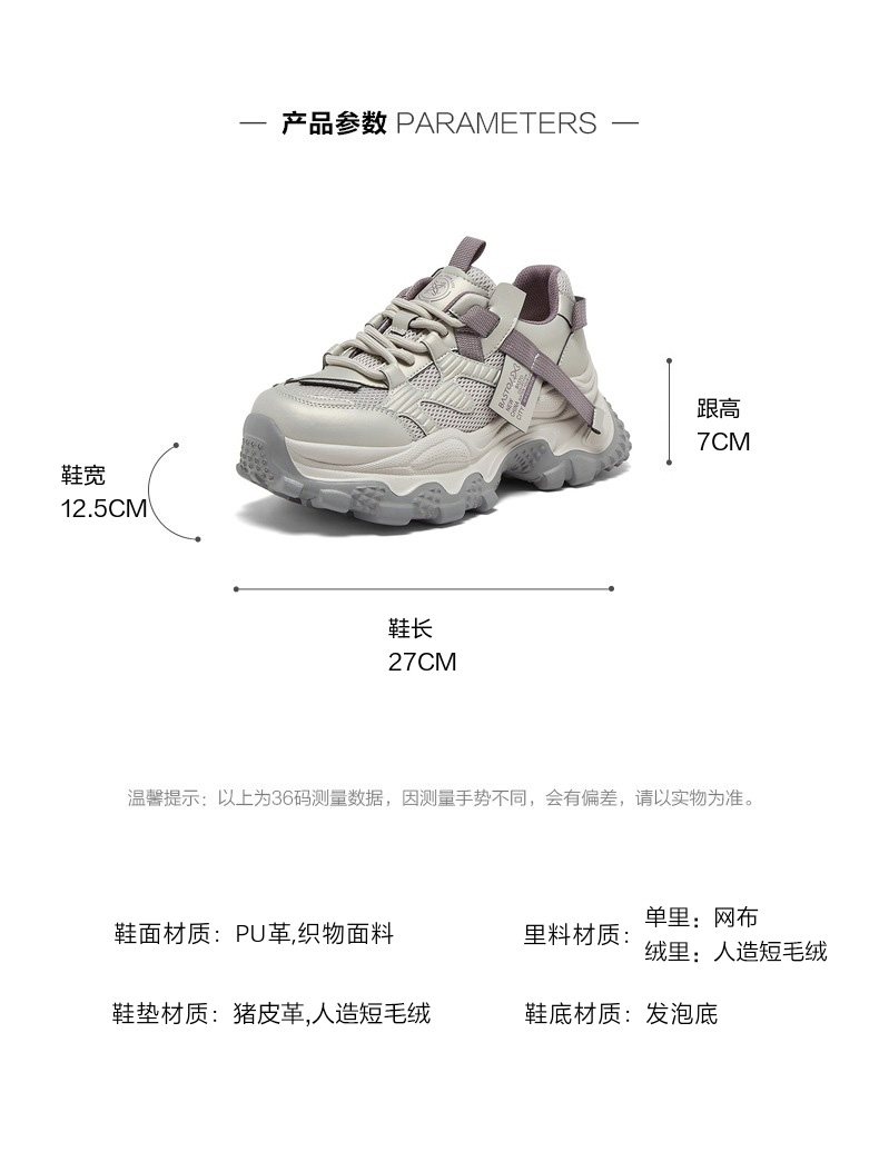 | 配跟:无 | 上市时间:2026年春季 | 鞋类流行款式:老爹鞋 | 鞋头款式:圆头 | 鞋面图案:纯色 |