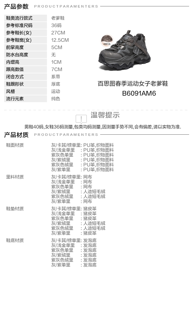 | 鞋跟形状:厚底 | 参考鞋长(女):27CM | 流行元素:纯色 | 参考鞋宽(女):12.5CM | 风格:运动 |