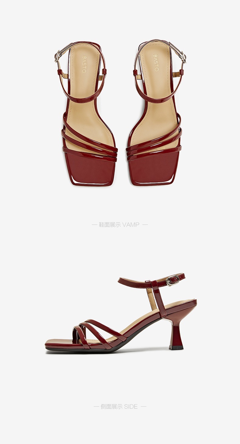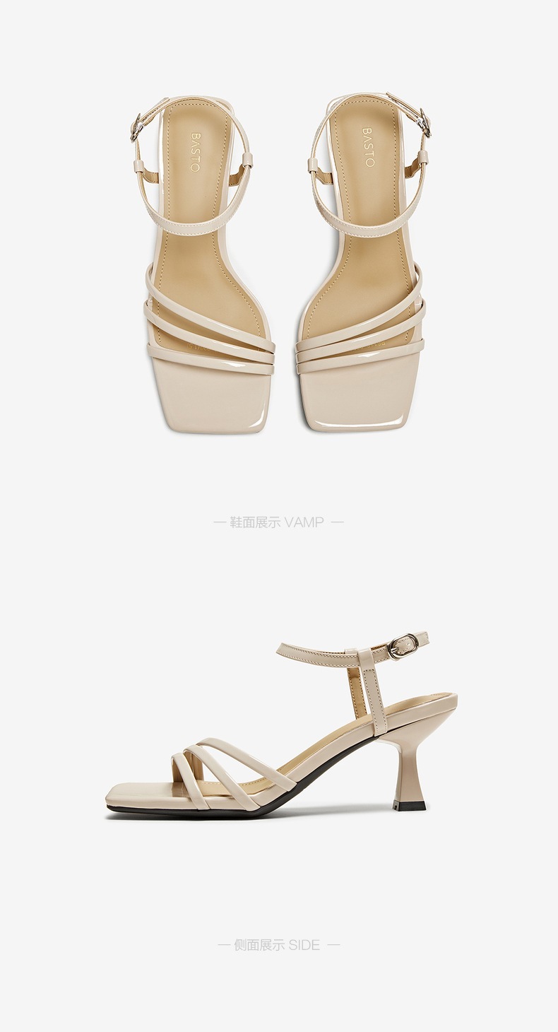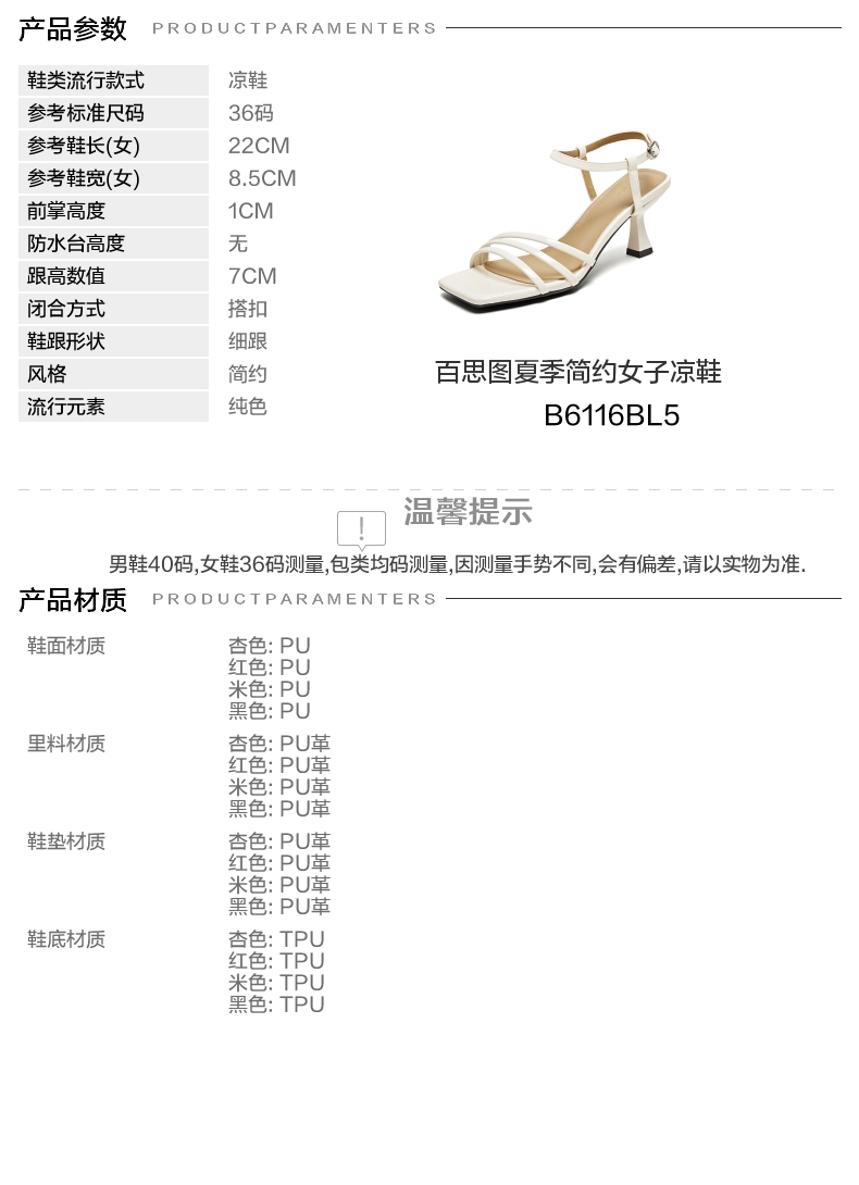 | 鞋头款式:露趾 | 鞋底材质:TPU | 鞋面图案:纯色 | 鞋跟形状:细跟 | 鞋面材质:PU |