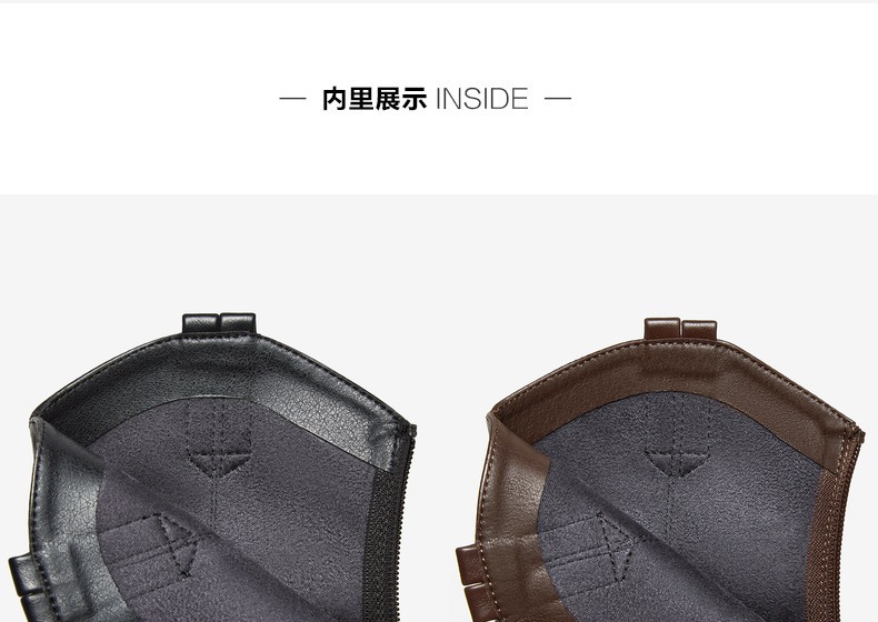 | 靴筒筒面材质:PU革 | 里料材质:PU革 | 制鞋工艺:胶贴皮鞋 | 鞋垫材质:猪皮革 | 款式季节:冬季 |