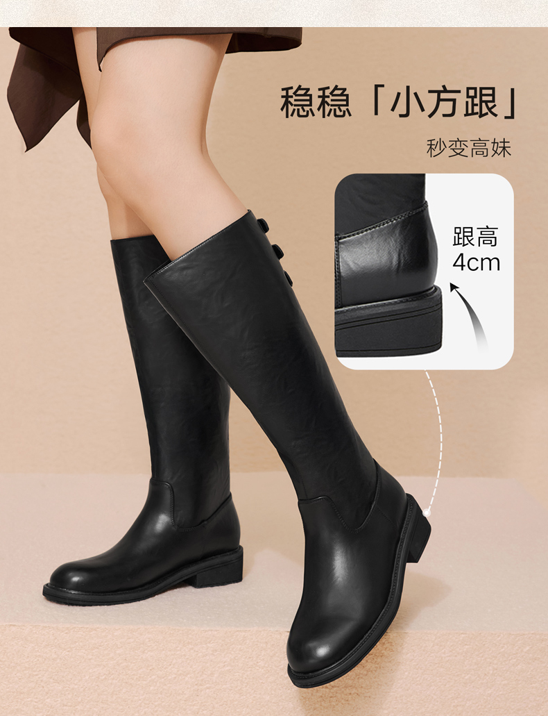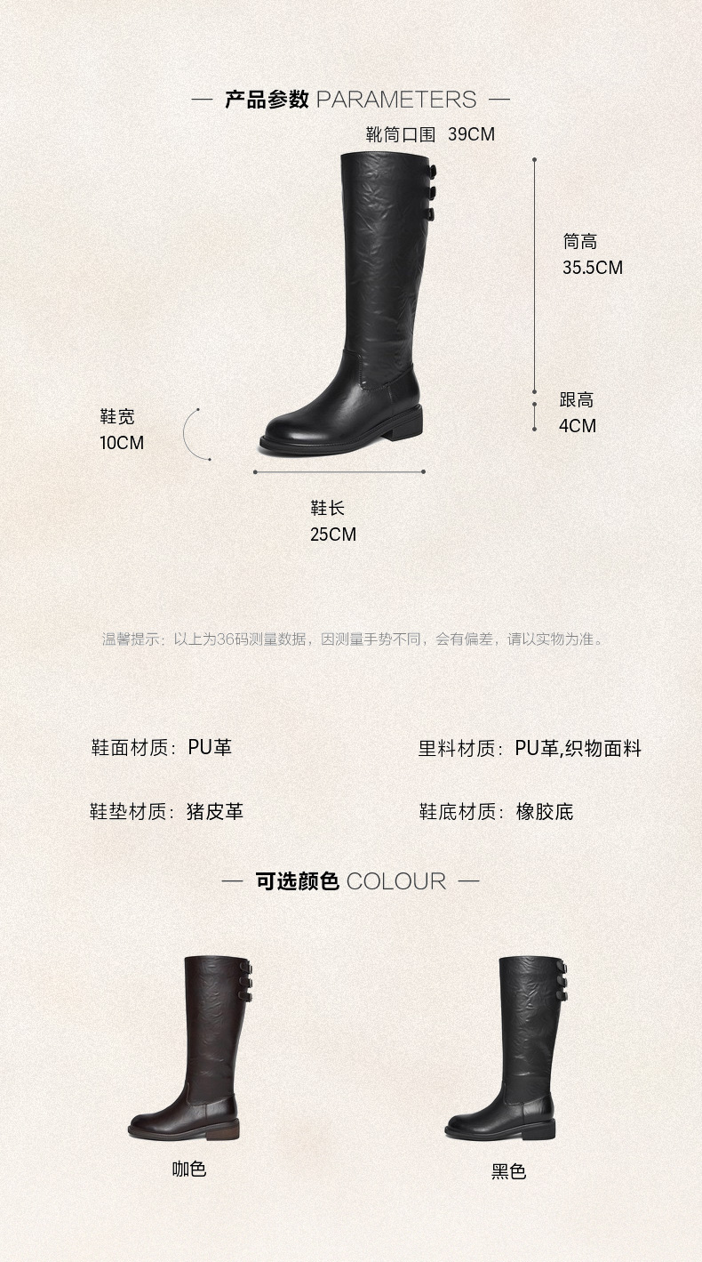 | 配跟:无 | 靴筒口围:39CM | 上市时间:2025年冬季 | 鞋类流行款式:骑士靴 | 鞋头款式:圆头 |