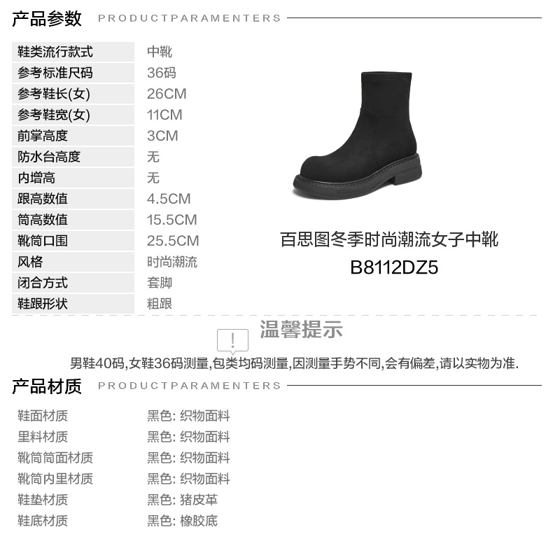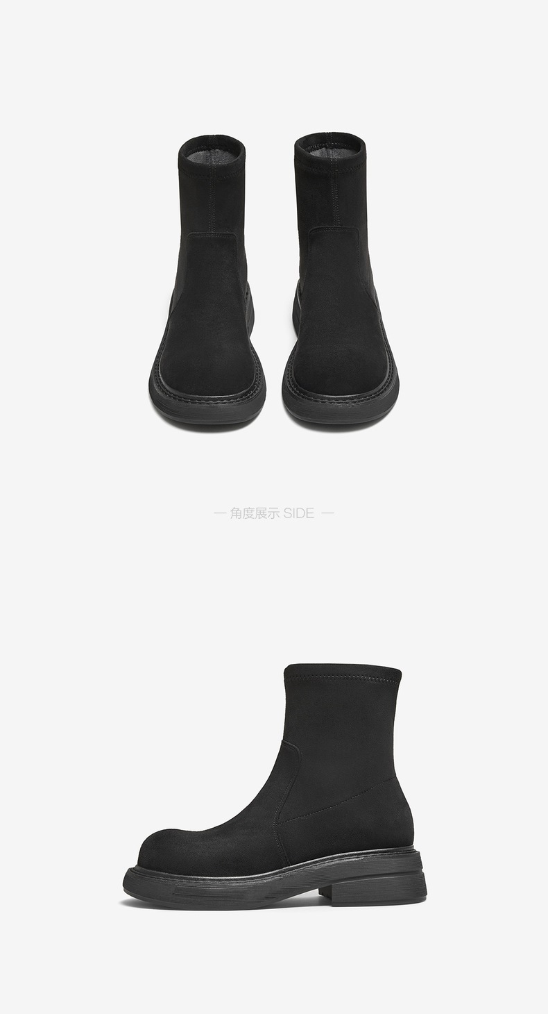 | 配跟:无 | 靴筒口围:25.5CM | 上市时间:2025年冬季 | 鞋类流行款式:中靴 | 鞋头款式:圆头 |