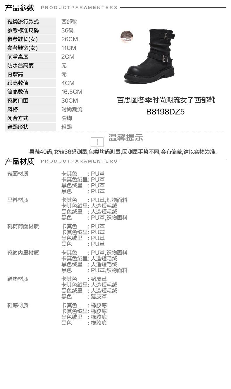 | 配跟:无 | 靴筒口围:30CM | 上市时间:2025年冬季 | 鞋类流行款式:西部靴 | 鞋头款式:圆头 |