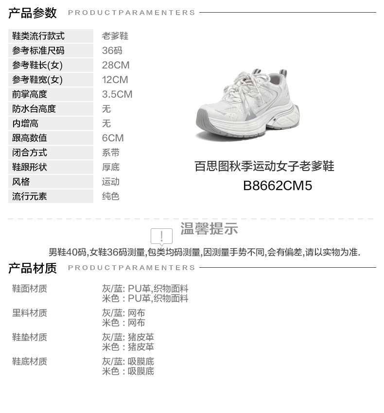| 配跟:无 | 上市时间:2025年秋季 | 鞋类流行款式:老爹鞋 | 鞋头款式:圆头 | 鞋面图案:纯色 |