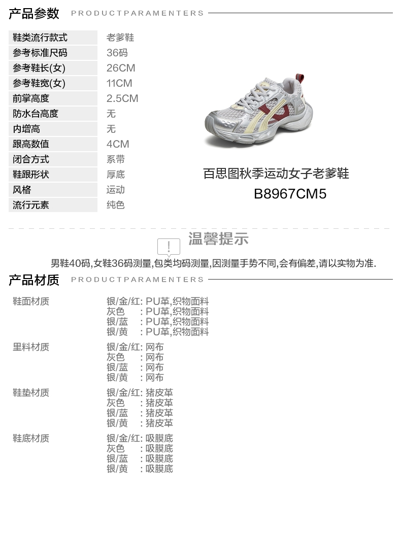 | 配跟:无 | 上市时间:2025年秋季 | 鞋类流行款式:老爹鞋 | 鞋头款式:圆头 | 鞋面图案:纯色 |