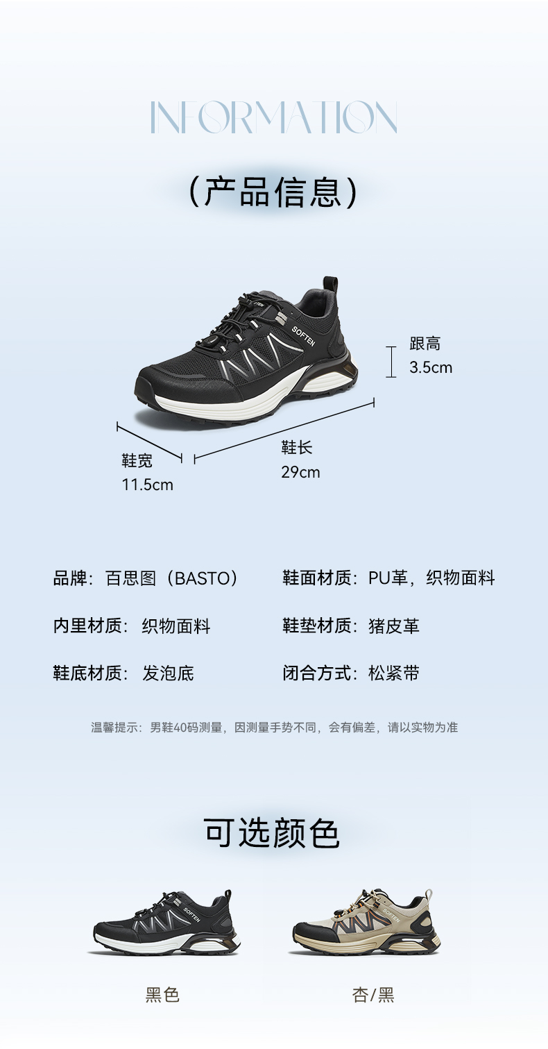 | 风格:运动 | 色系:杏色 | 跟高数值:3.5CM | 40码鞋宽参考(男):11.5CM | 性别:男子 |