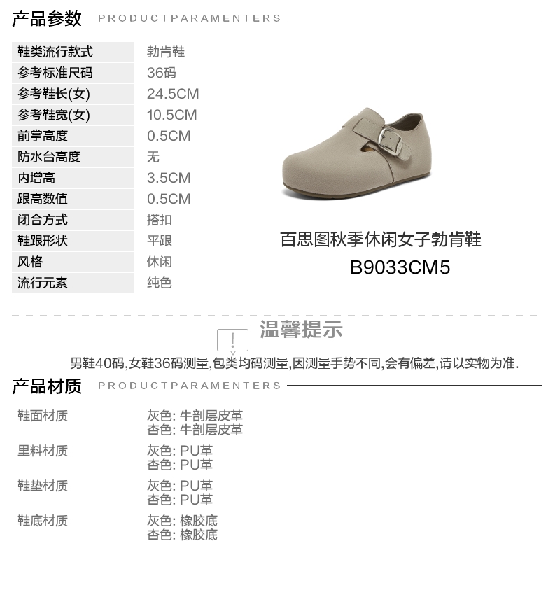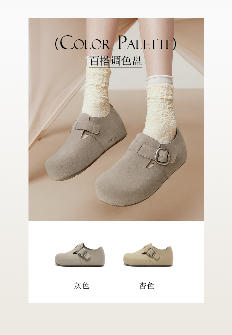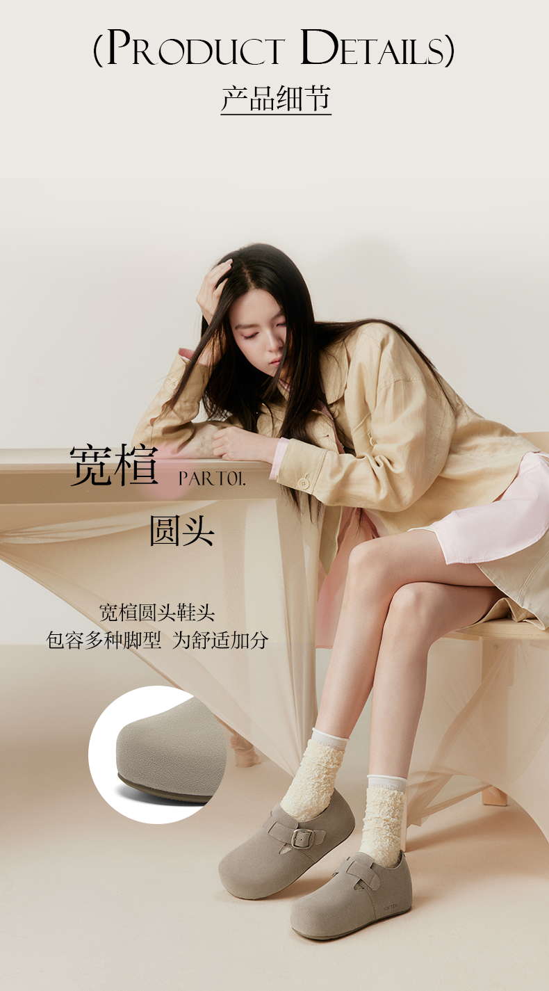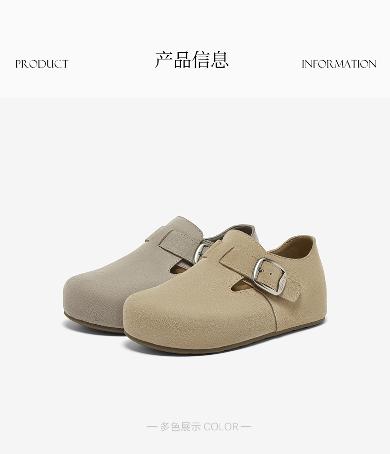 | 配跟:无 | 上市时间:2025年秋季 | 鞋类流行款式:勃肯鞋 | 鞋头款式:圆头 | 鞋面图案:纯色 |