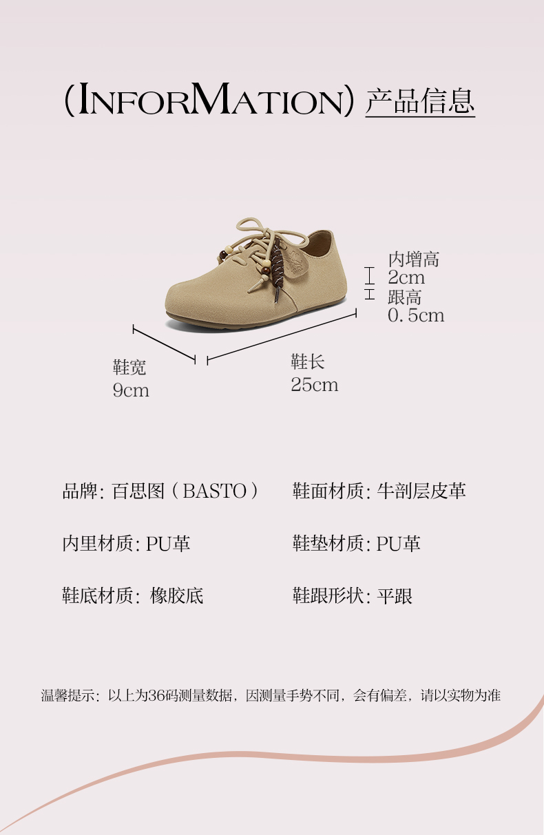 BASTO(百思图),品牌拥有17年历史,秉承优雅、甜美、清新的设计理念,主张“好嫁风”的产品风格,将甜美俏丽的少女情怀融合优雅气质的时尚品味,塑造出唯美优雅、受欢迎的女鞋款式。主打以女性温柔与亲和力为特色的流行时尚产品,糅合雅致又富有亲和力的裸粉色调,淑媛端庄、清新甜美。目前品牌已开设线下门店达1400多家。