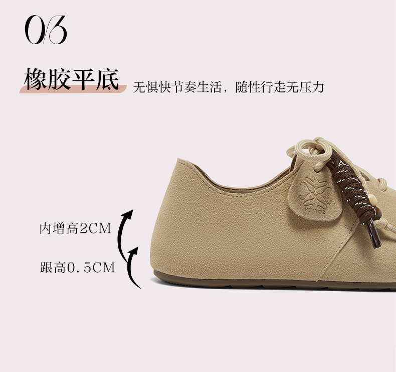 | 闭合方式:系带 | 风格:休闲 | 跟高数值:0.5CM | 色系:咖啡色 | 配跟:无 |