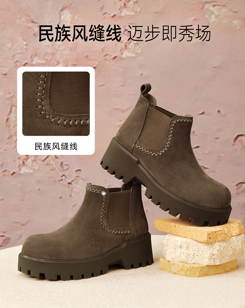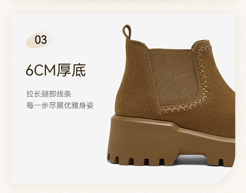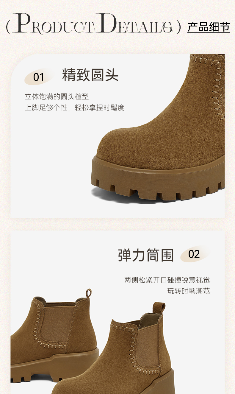 | 帮面材质:牛剖层革 | 配跟:无 | 靴筒口围:27CM | 上市时间:2025年冬季 | 鞋类流行款式:切尔西靴 |