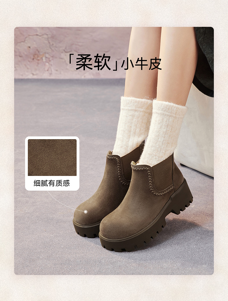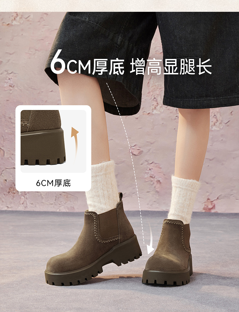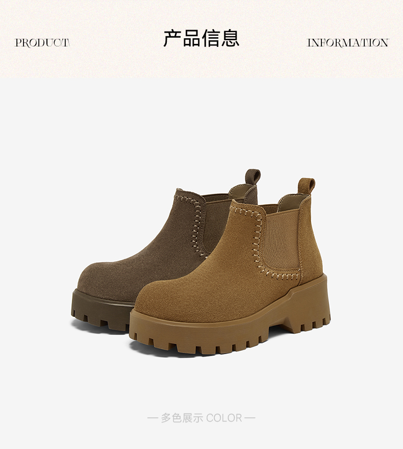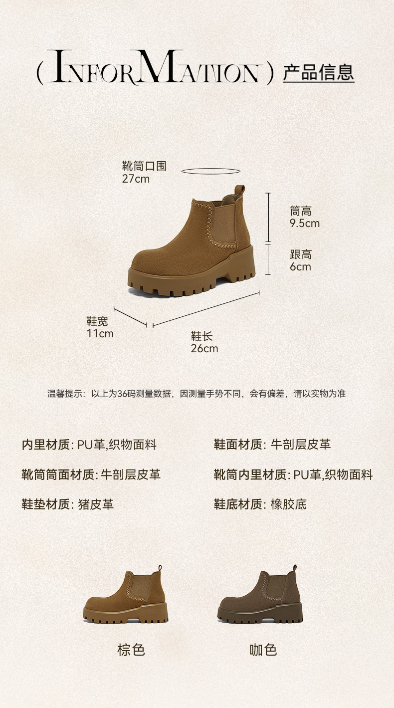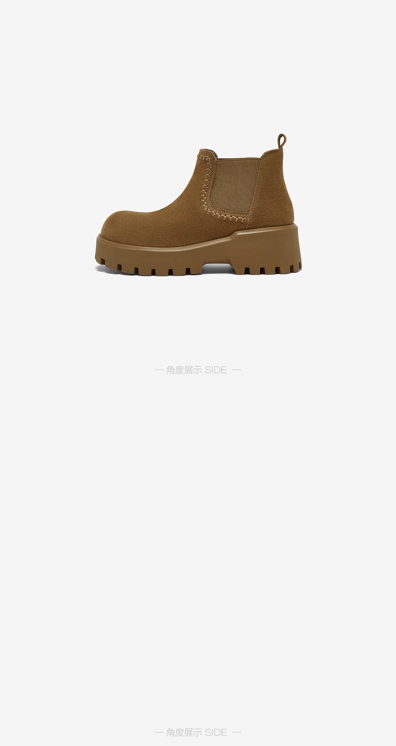 | 帮面材质:牛剖层革 | 配跟:无 | 靴筒口围:27CM | 上市时间:2025年冬季 | 鞋类流行款式:切尔西靴 |