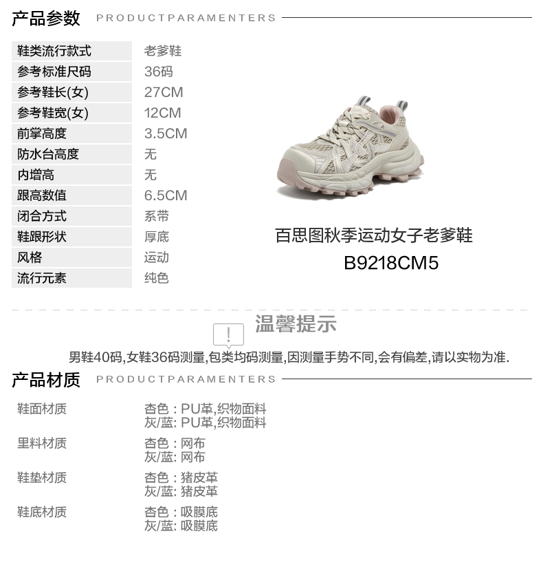 | 配跟:无 | 上市时间:2025年秋季 | 鞋类流行款式:老爹鞋 | 鞋头款式:圆头 | 鞋面图案:纯色 |