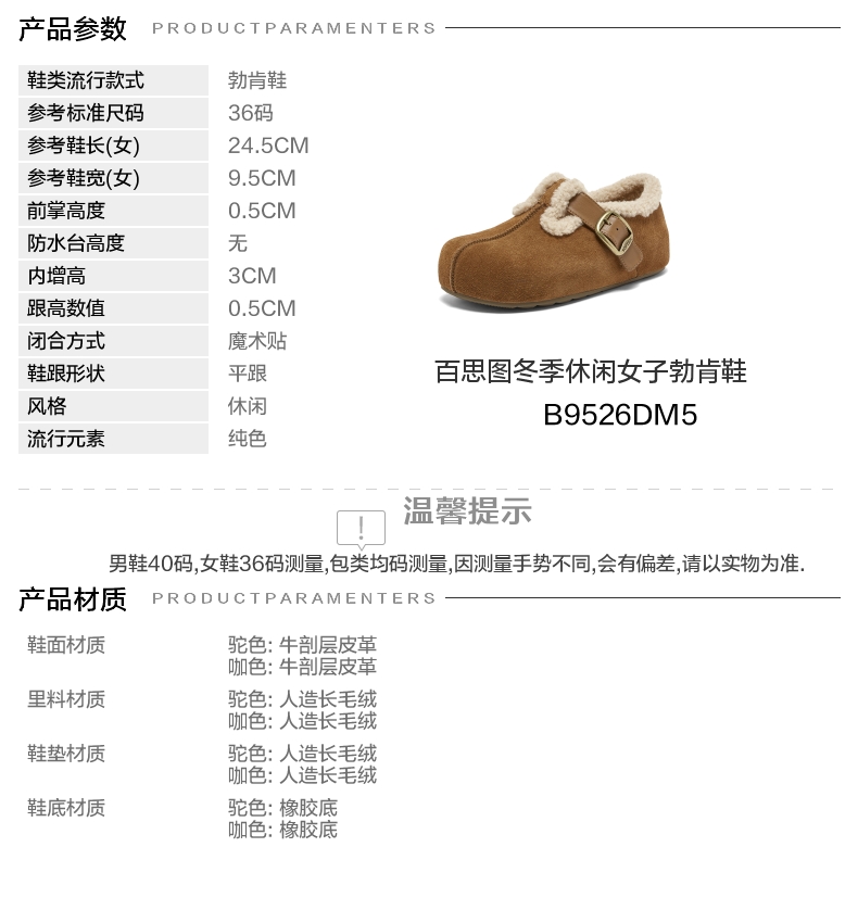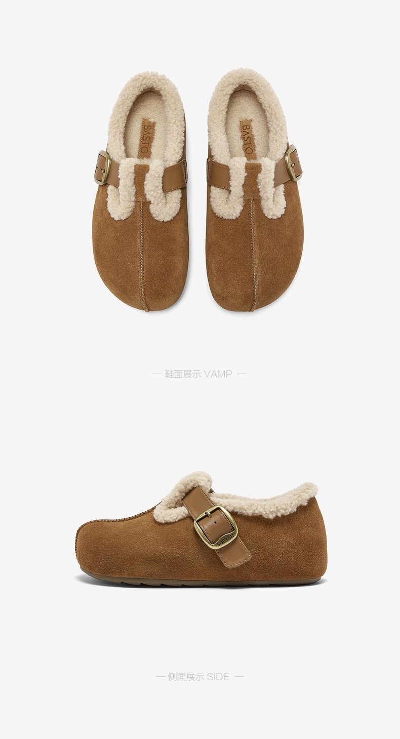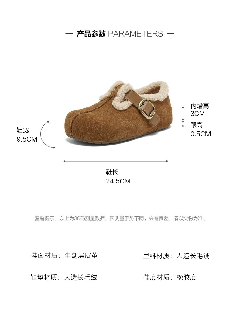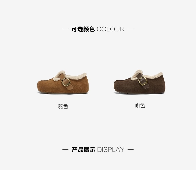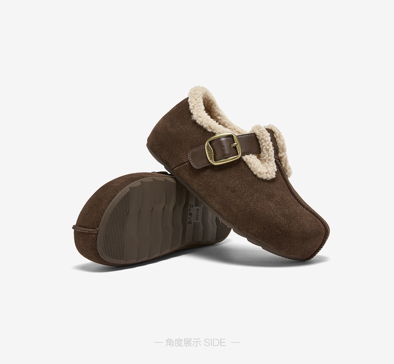 | 风格:休闲 | 鞋面内里材质:人造长毛绒 | 色系:棕色 | 跟高数值:0.5CM | 适用人群:女子 |