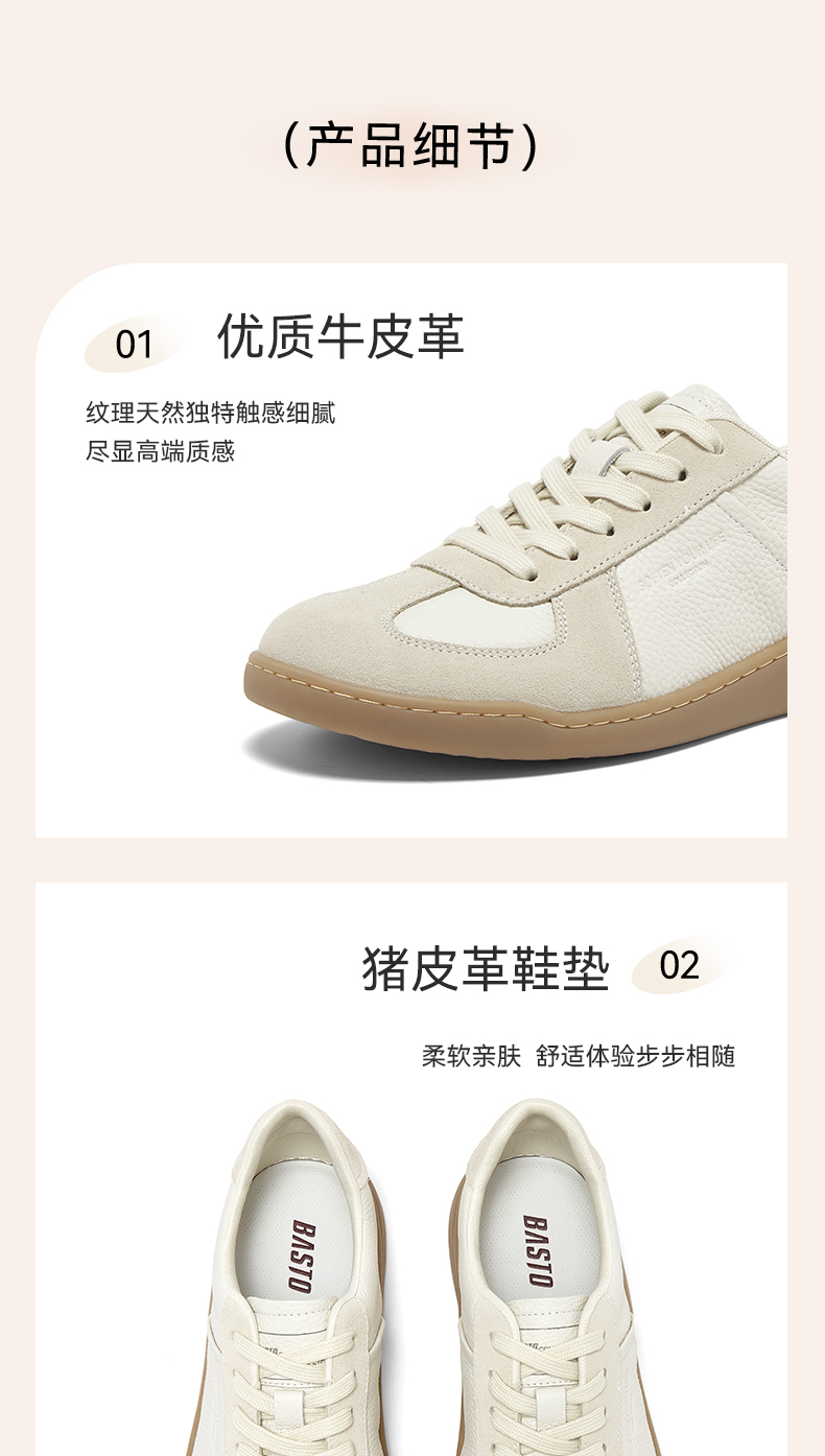 BASTO(百思图),品牌拥有17年历史,秉承优雅、甜美、清新的设计理念,主张“好嫁风”的产品风格,将甜美俏丽的少女情怀融合优雅气质的时尚品味,塑造出唯美优雅、受欢迎的女鞋款式。主打以女性温柔与亲和力为特色的流行时尚产品,糅合雅致又富有亲和力的裸粉色调,淑媛端庄、清新甜美。目前品牌已开设线下门店达1400多家。