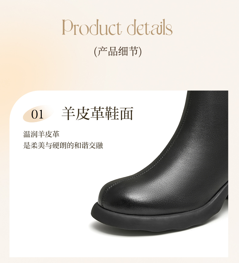 | 帮面材质:羊皮 | 配跟:无 | 靴筒口围:26.5CM | 上市时间:2024年冬季 | 鞋类流行款式:时装靴 |