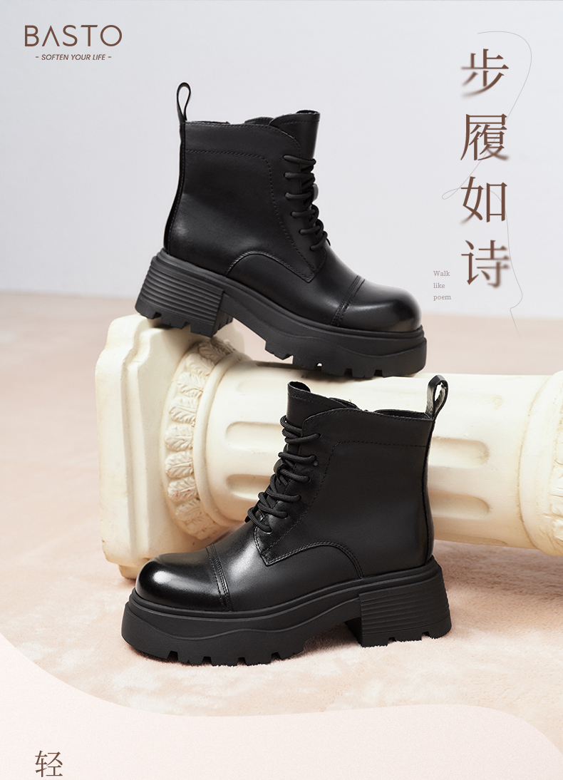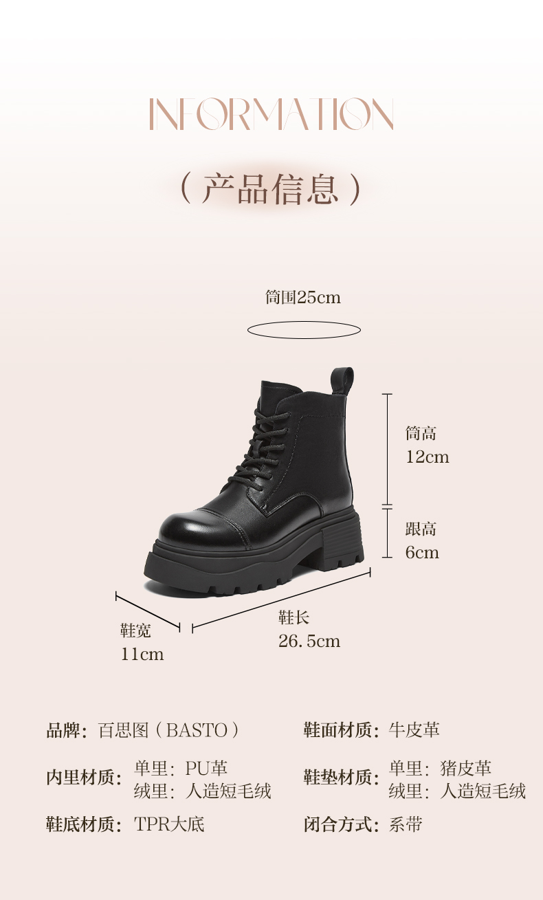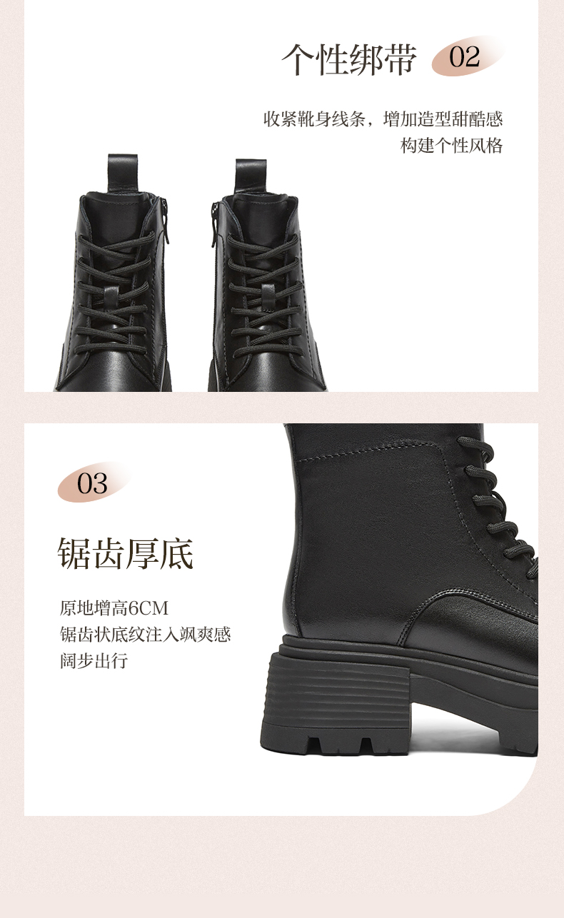| 鞋底材质:TPR大底 | 靴筒内里材质:PU革 | 内增高:无 | 鞋面材质:牛皮革 | 闭合方式:系带 |