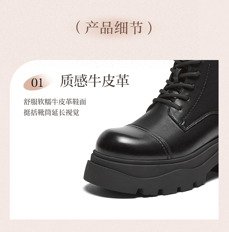 | 帮面材质:牛皮革 | 配跟:无 | 靴筒口围:25CM | 上市时间:2024年冬季 | 鞋类流行款式:马丁靴 |