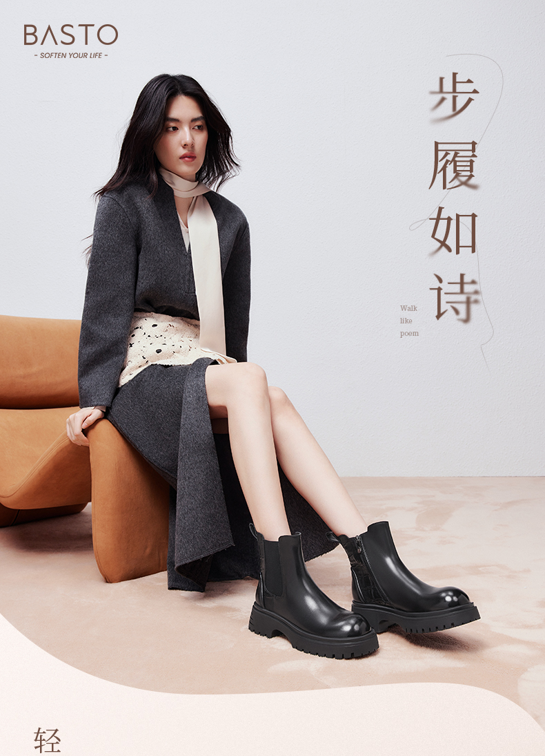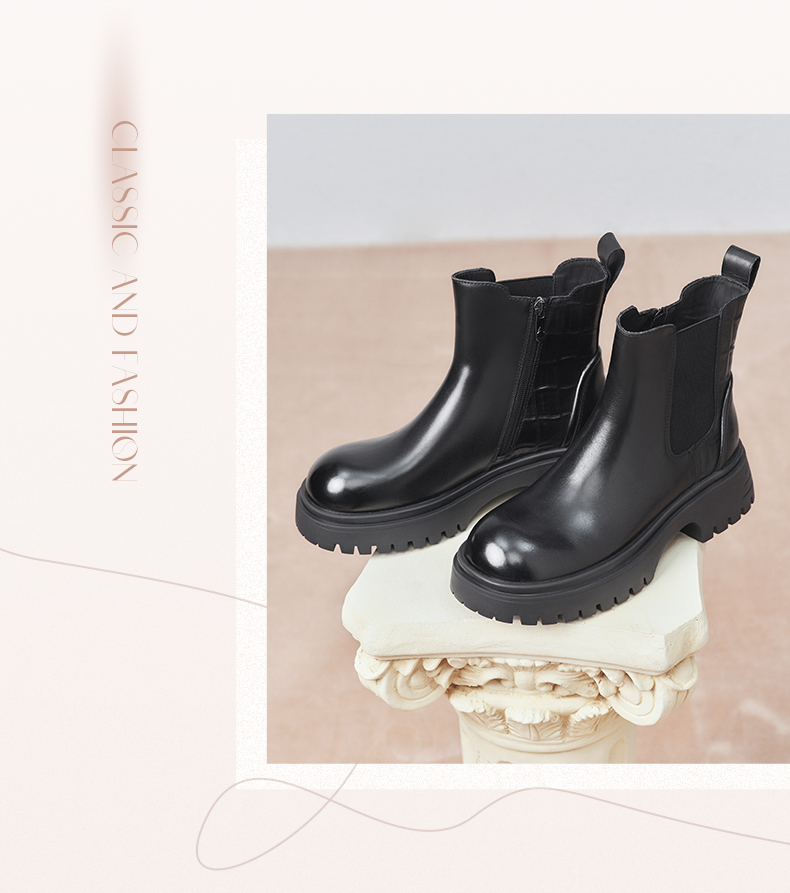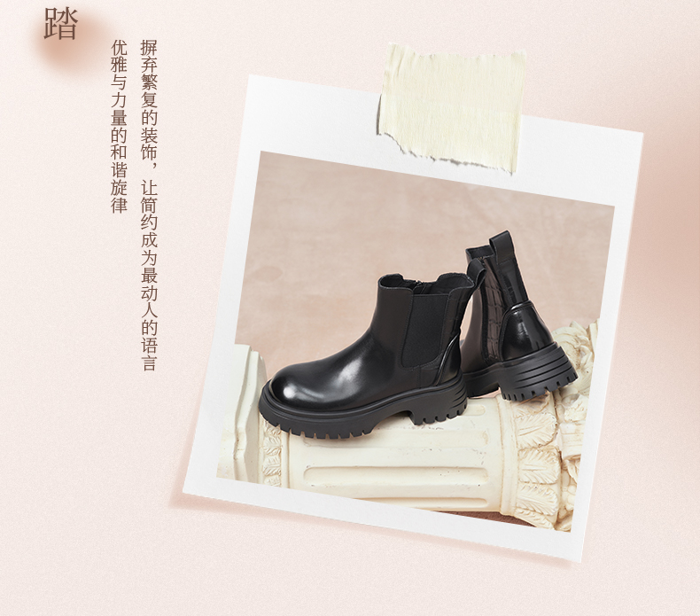 | 鞋类流行款式:短靴 | 鞋头款式:圆头 | 执行标准:舒适上班鞋Q/LR001-2023 | 跟高范围:中跟鞋(3-5CM) | 鞋面图案:纯色 |