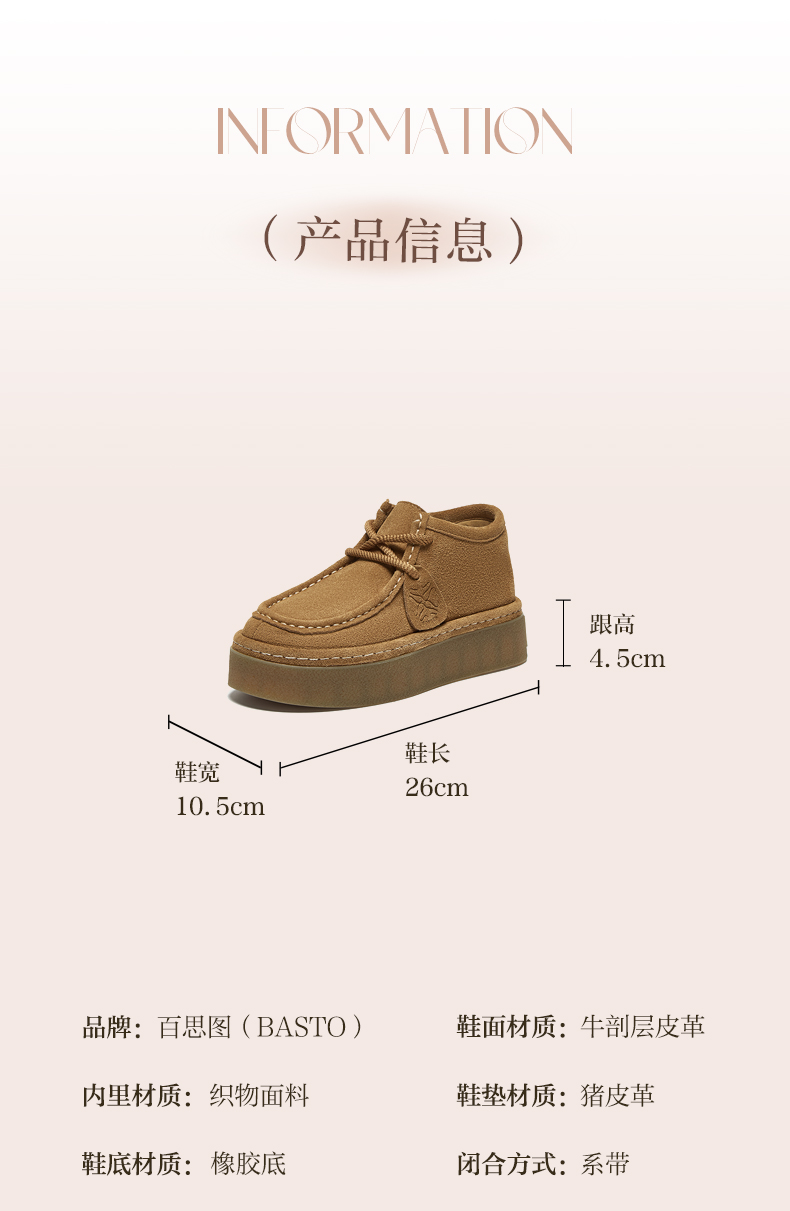 | 制鞋工艺:车线胶粘 | 款式季节:春季 | 鞋垫材质:猪皮革 | 渠道划分:线下同步 | 前掌高度:4.5CM |