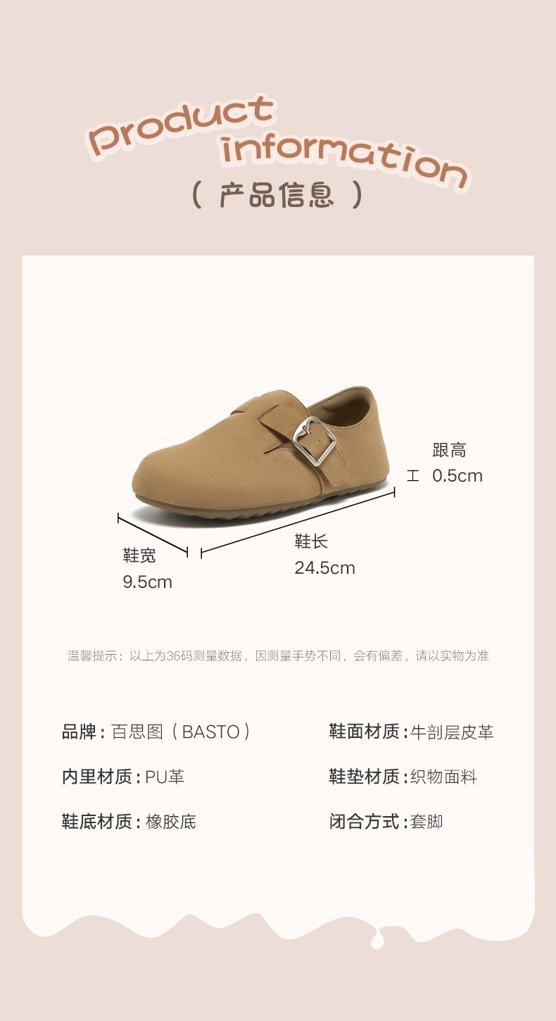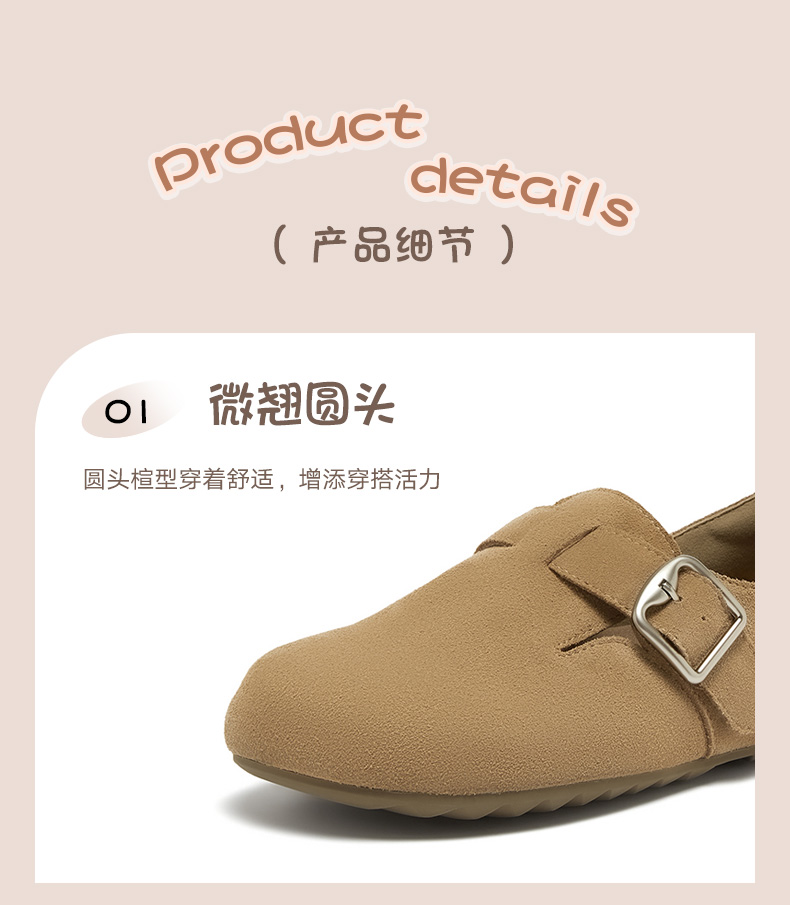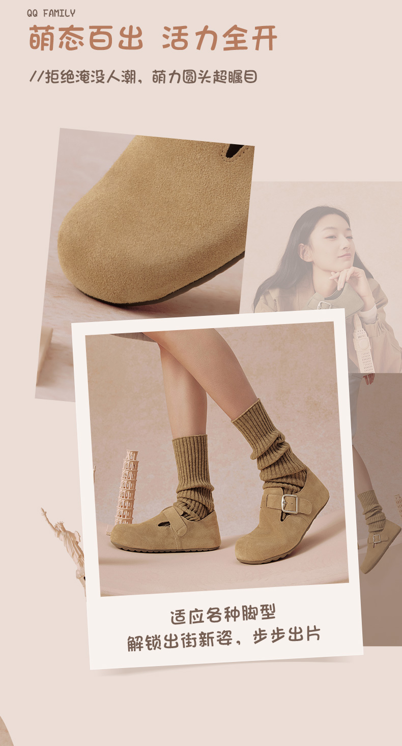 | 配跟:无 | 上市时间:2024年秋季 | 鞋类流行款式:勃肯鞋 | 鞋头款式:圆头 | 鞋面图案:纯色 |
