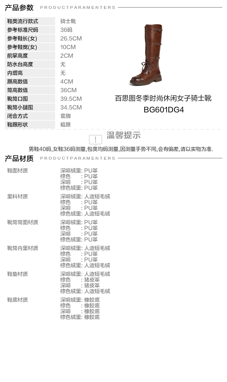 | 配跟:无 | 靴筒口围:39.5CM | 上市时间:2024年冬季 | 鞋类流行款式:骑士靴 | 鞋头款式:圆头 |