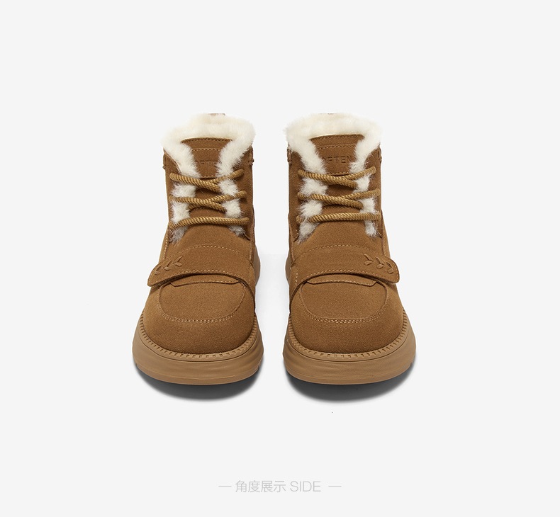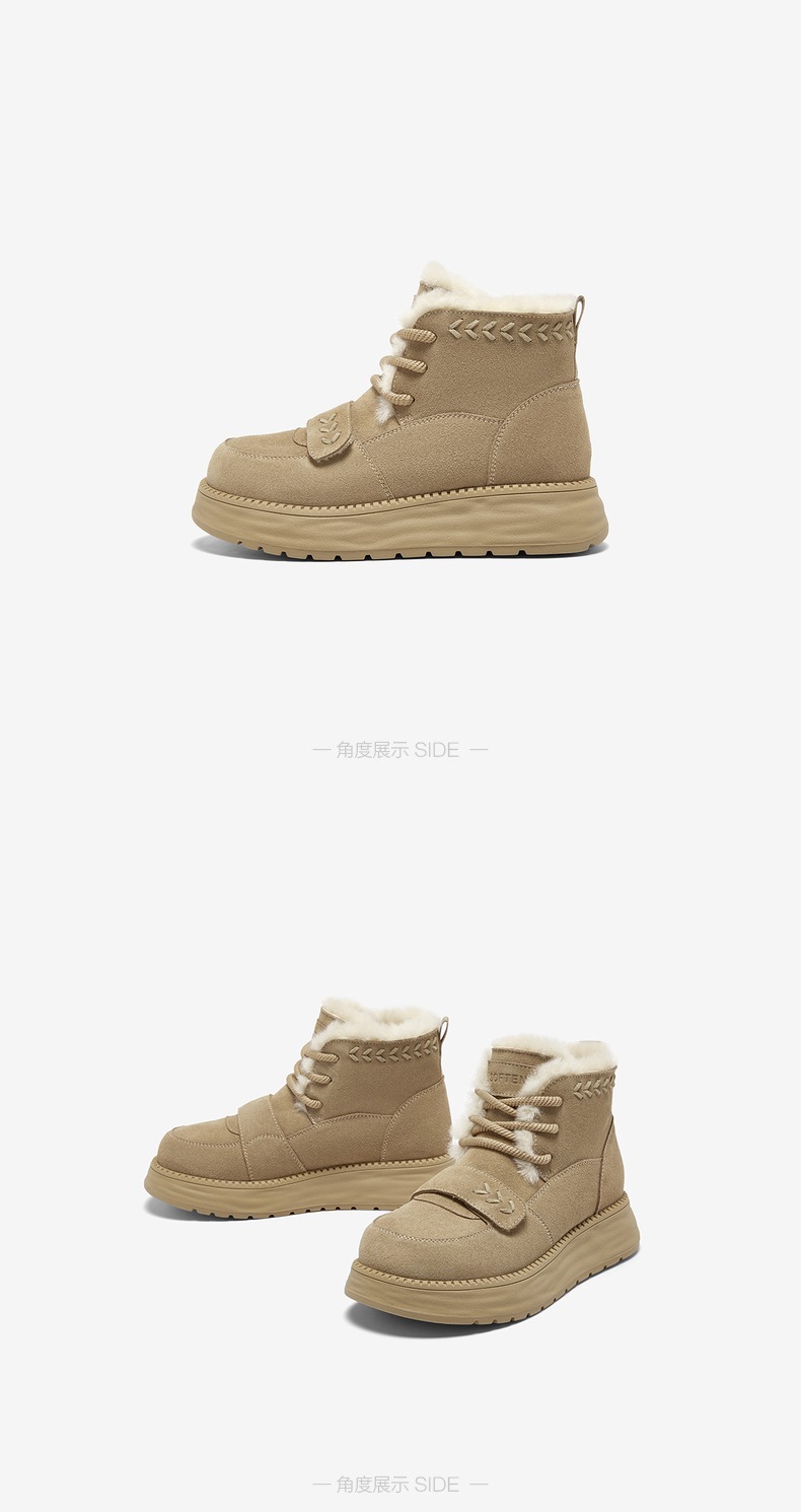 | 鞋底材质:橡胶底 | 靴筒内里材质:人造长毛绒猪皮革 | 内增高:无 | 鞋面材质:牛剖层皮革 | 闭合方式:系带 |