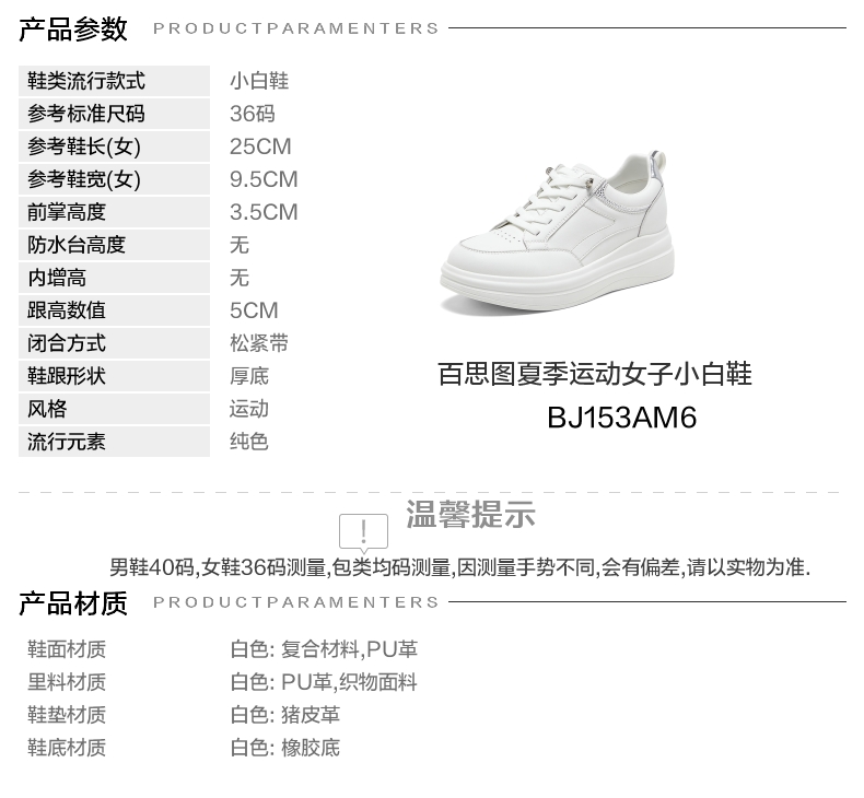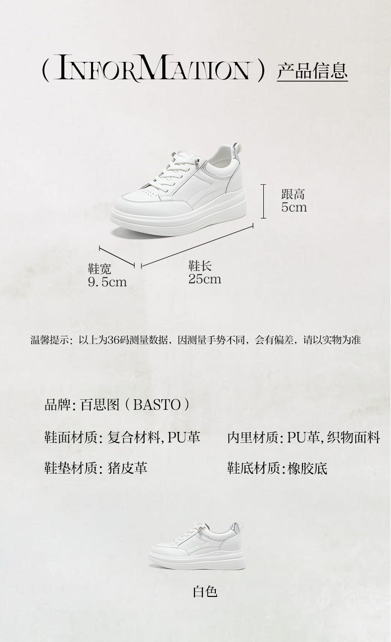 | 鞋面内里材质:PU织物 | 色系:白色 | 跟高数值:5CM | 适用人群:女子 | 性别:女子 |
