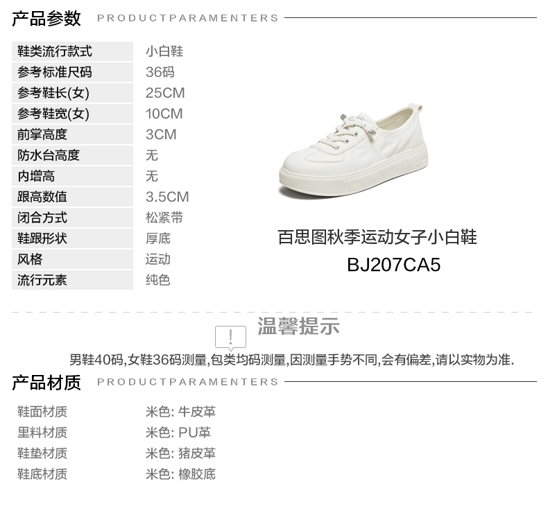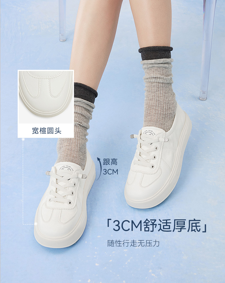 | 配跟:无 | 上市时间:2025年秋季 | 鞋类流行款式:小白鞋 | 鞋头款式:圆头 | 鞋面图案:纯色 |