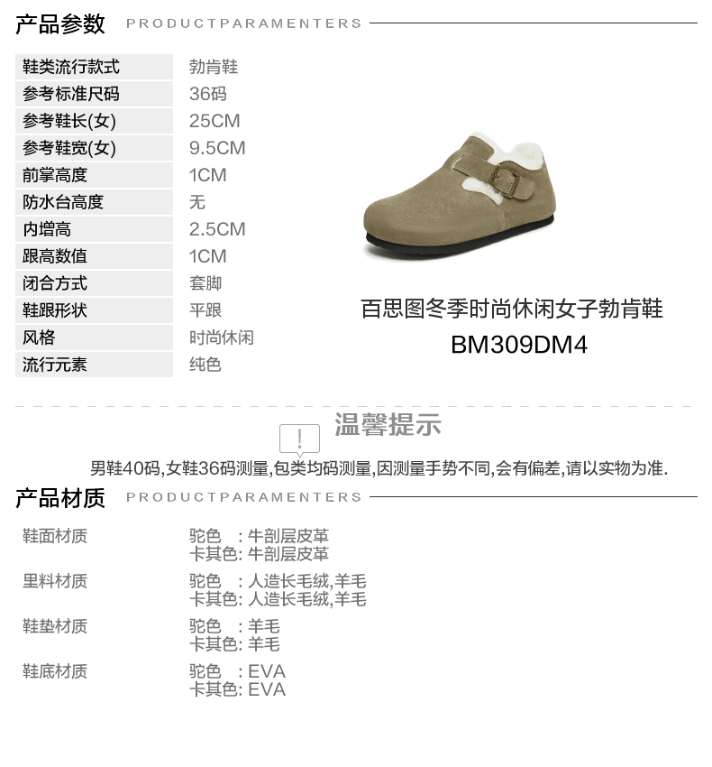 | 前掌高度:1CM | 皮质特征:无 | 防水台高度:无 | 销售季:2024年冬季 |
