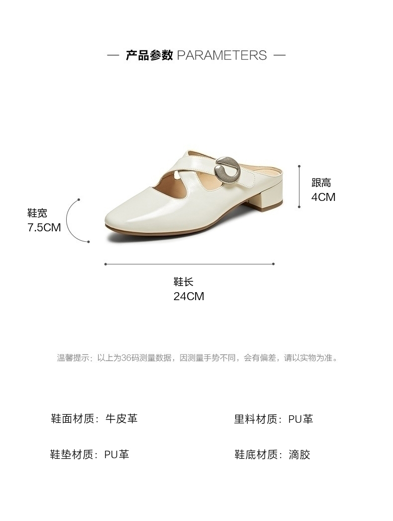 | 皮质特征:牛皮革 | 防水台高度:无 | 鞋类流行款式:穆勒鞋 |