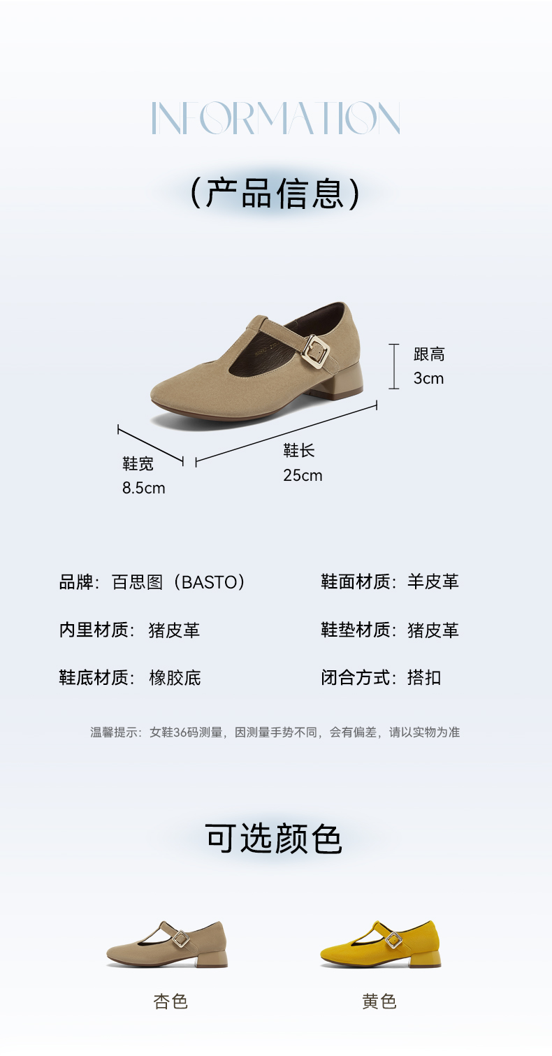 | 鞋面材质:羊皮革 | 流行元素:纯色 | 参考鞋长(女):25CM | 参考鞋宽(女):8.5CM | 闭合方式:搭扣 |