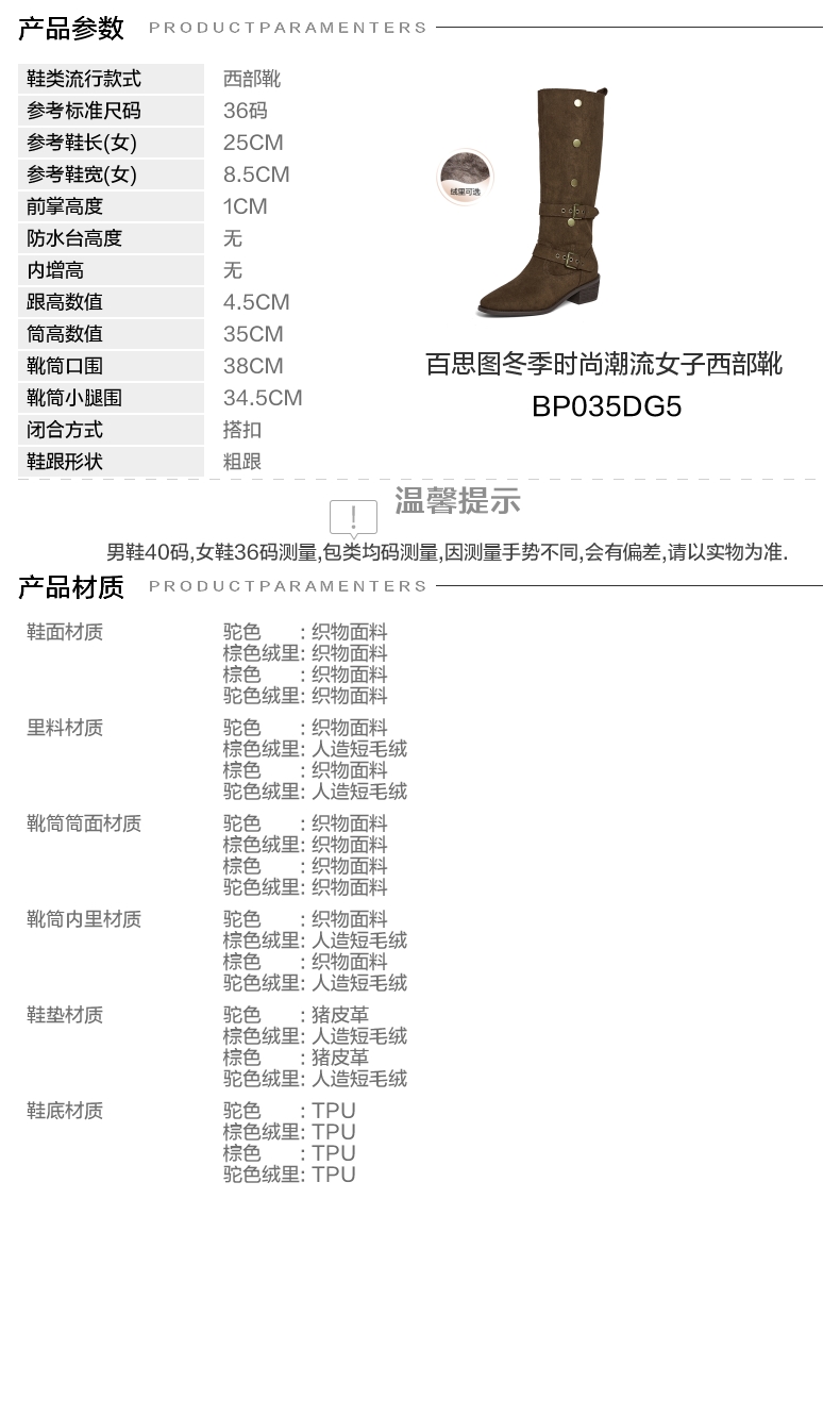• 百思图2025冬季新款西部靴时尚复古潮流粗跟女长靴BP035DG5
